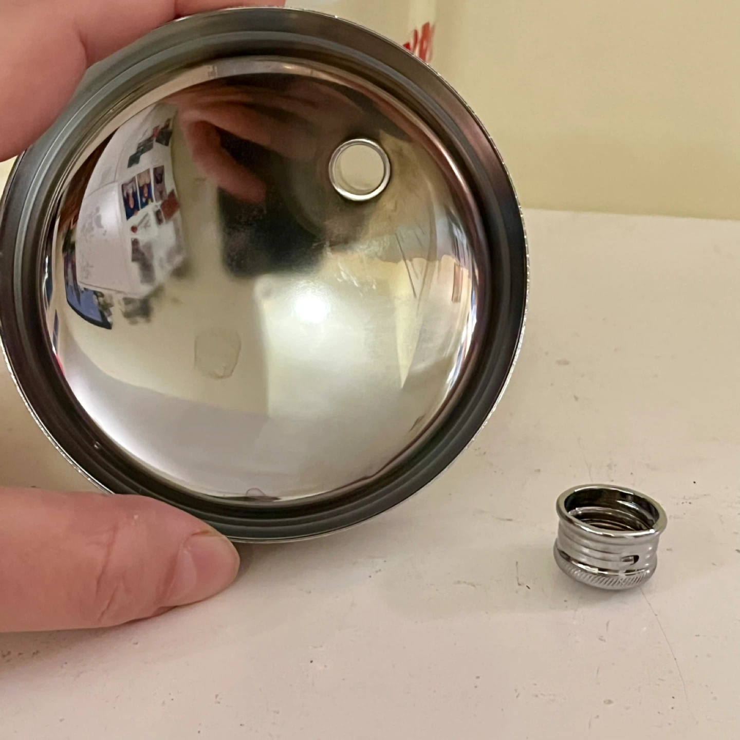 What a great piece of barware! This large and heavy cocktail shaker is in excellent vintage condition, both the body of the shaker and the chrome lid, which fits well.