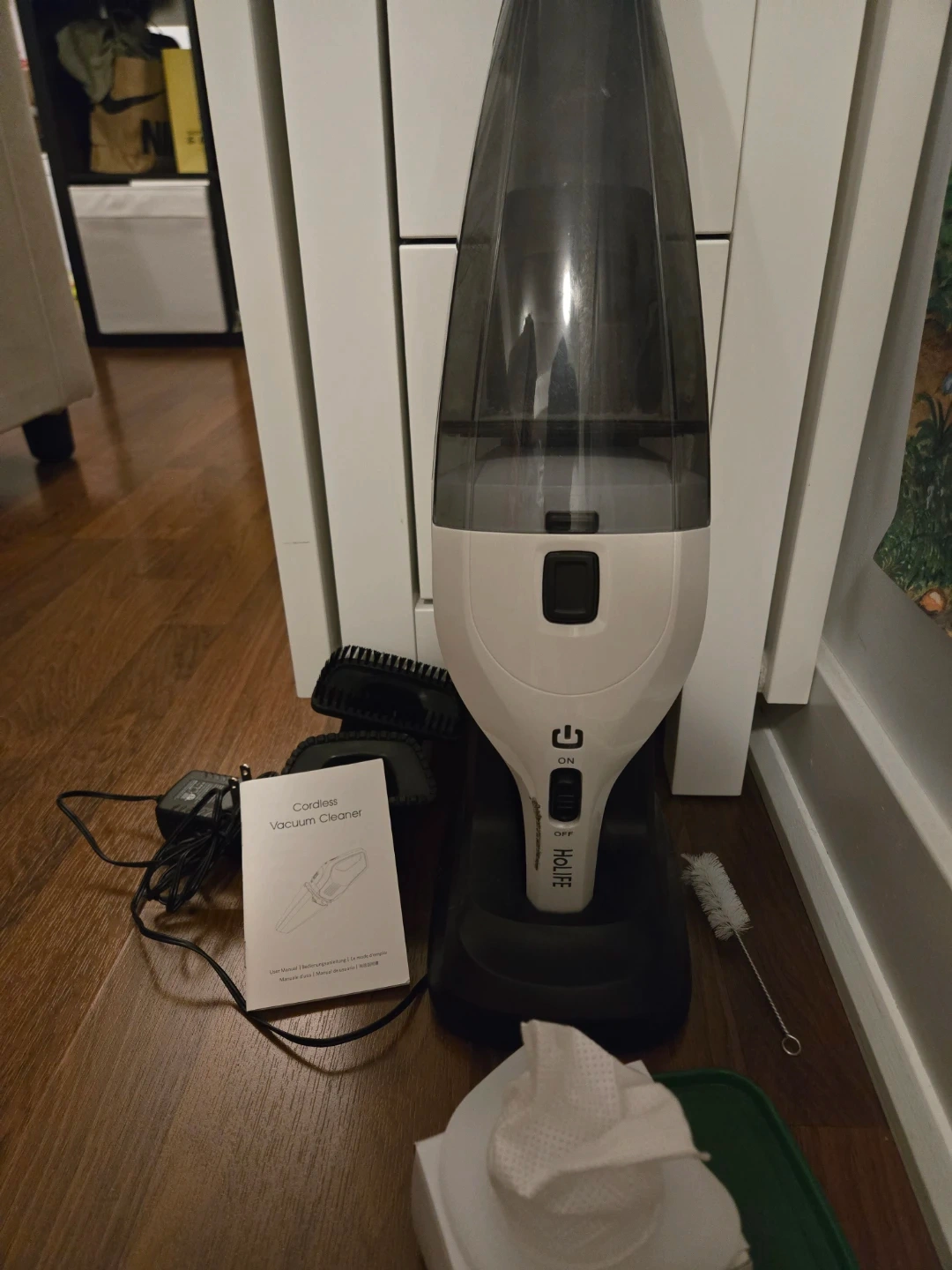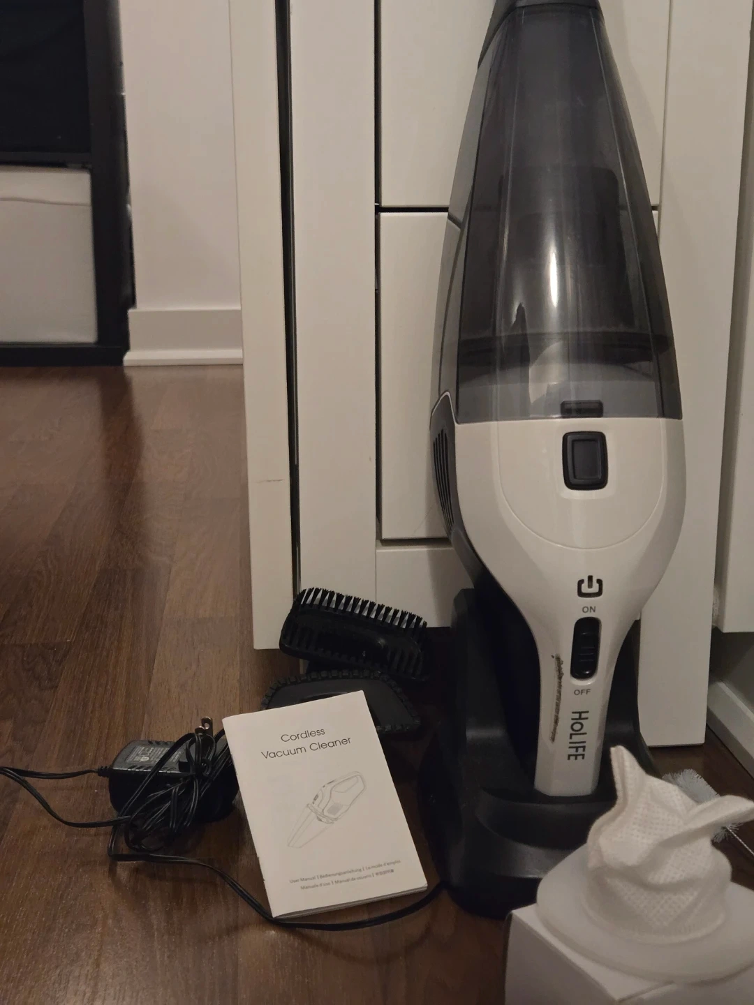 Selling a HOLIFE cordless vacuum cleaner! It comes with the charger, brush attachments and the original instructions. It's lightweight and portable making it easy to use for quick cleanups around the house