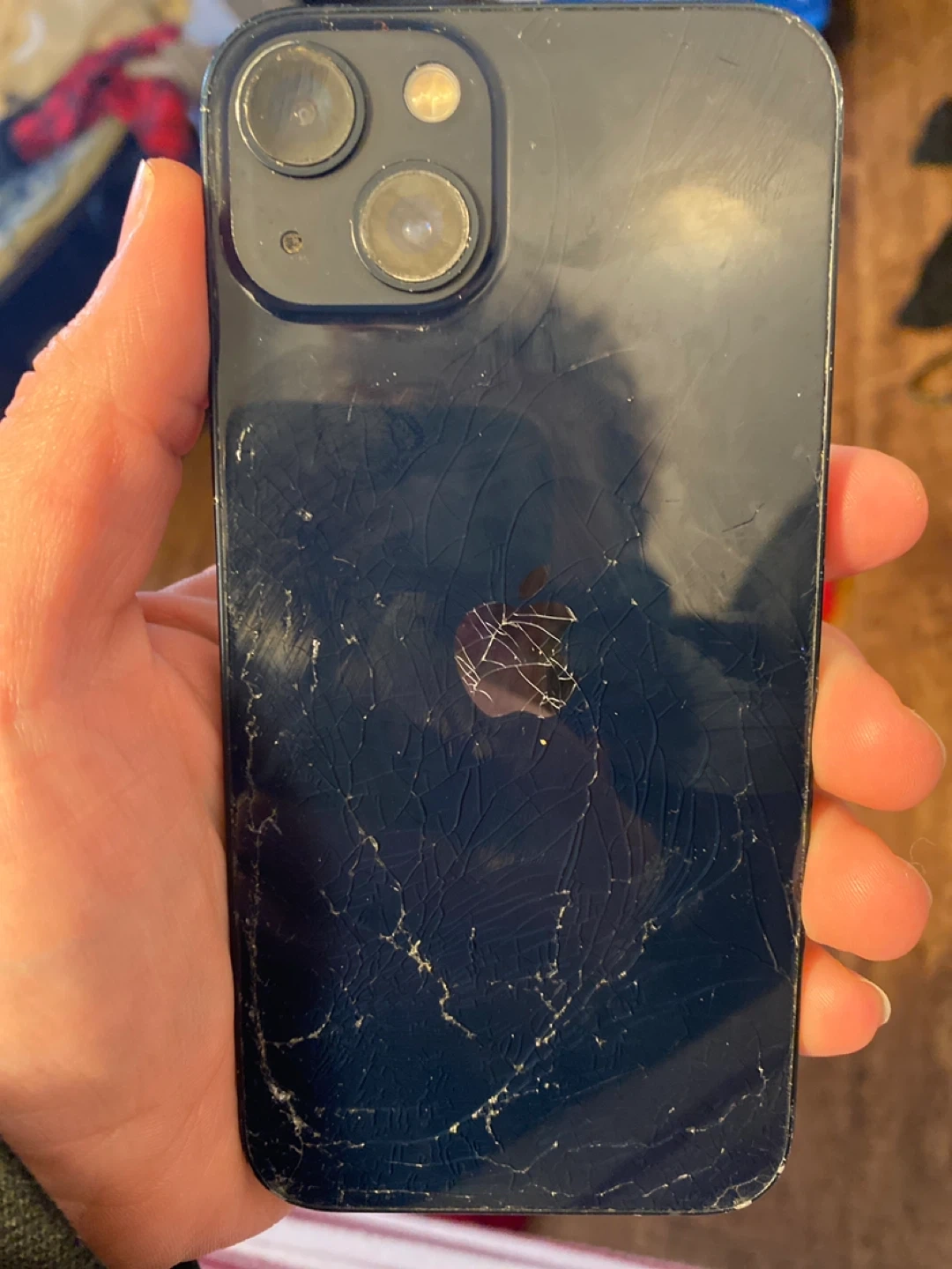 Selling an iPhone 13 with 128GB of storage in Midnight. Please note that the back is cracked. Model number is MLNC3VC/A. Battery life is at 84%, and it’s never had any replacements or repairs! It also comes with a box and a phone case. Works great! Unlocked!