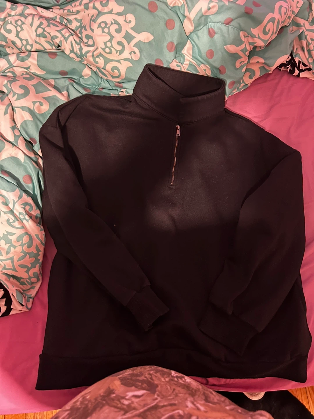 Here's a comfy black quarter-zip pullover! It's in great condition and ready for a new owner. Perfect for layering or just lounging around the house #freecycle