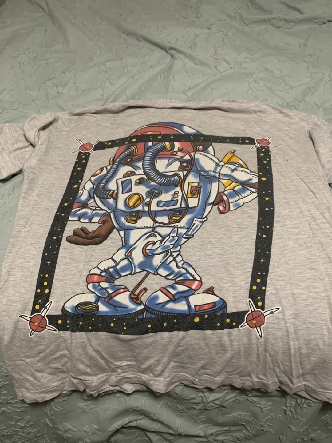 Here's a cool graphic tee! It's in great condition and would be a fun addition to anyone's wardrobe. The material is soft and comfortable, perfect for everyday wear. Perfect for vintage collections!