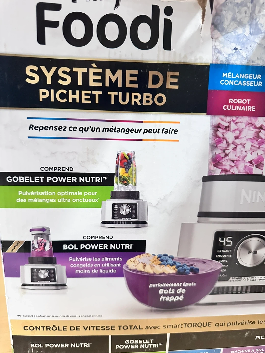 Selling a Ninja Foodi Power Pitcher System! It's in like-new condition and ready to tackle any blending task you throw its way. This system includes the power pitcher and power nutri bowl, perfect for smoothies, doughs, and more. It also features Auto-IQ one-touch intelligence with 1400 watts of maximum power! The box is included