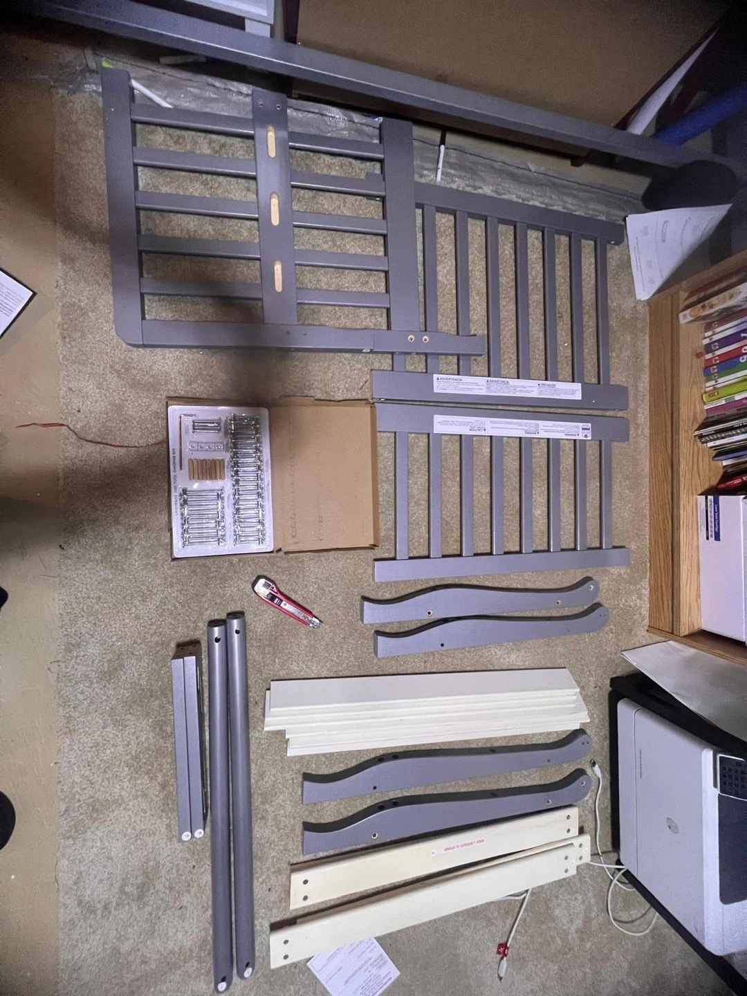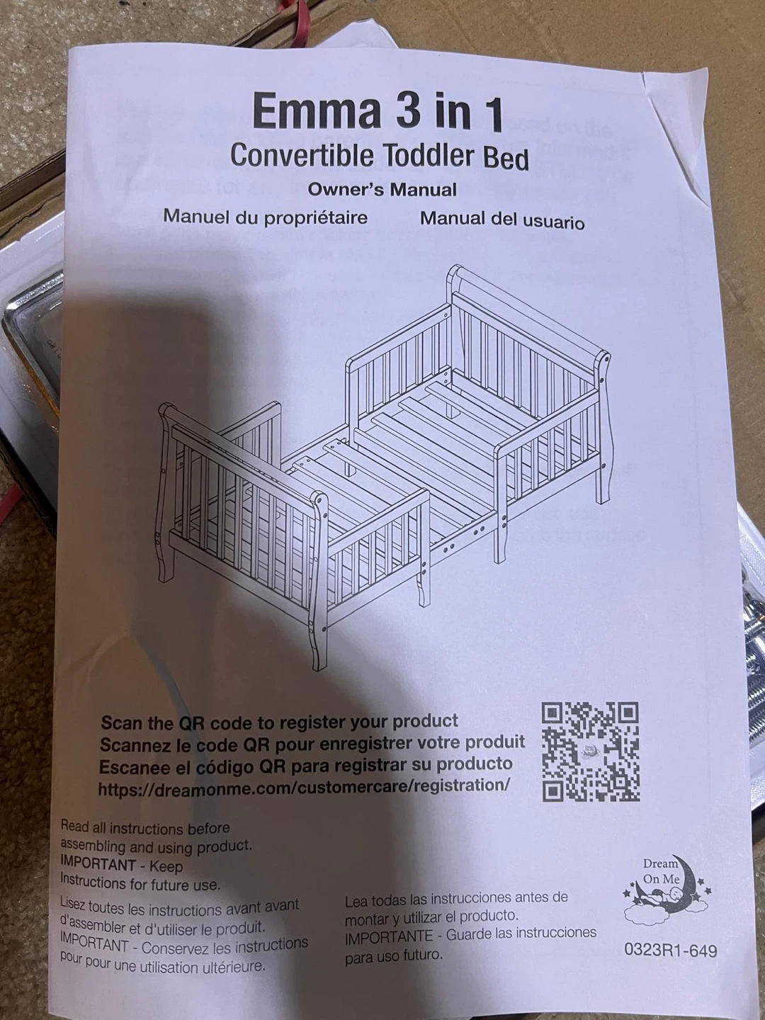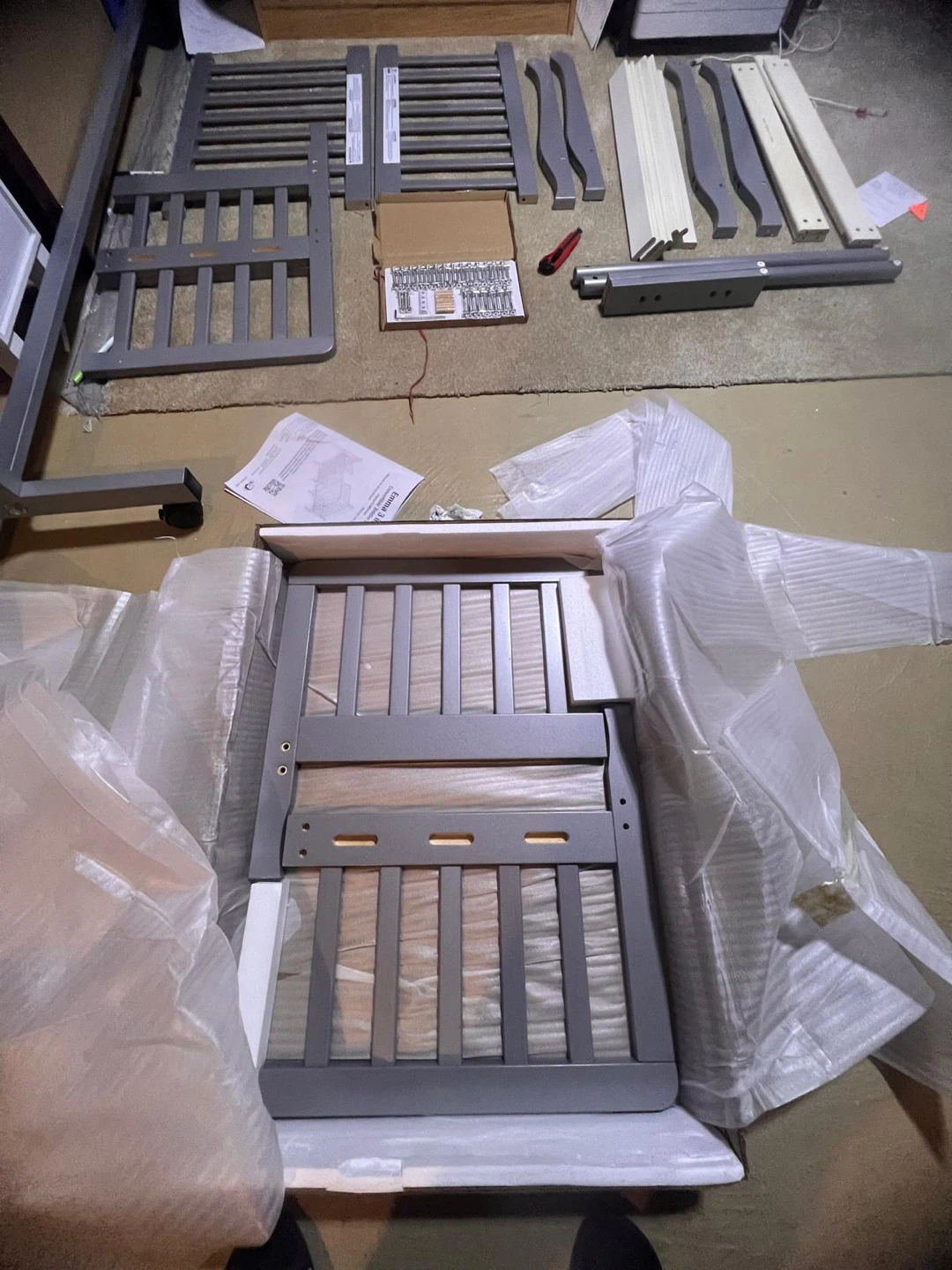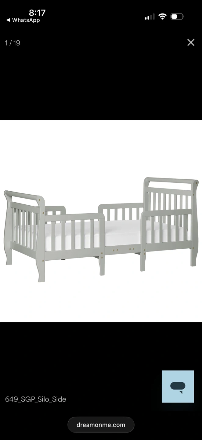 Brand new in box grey convertible toddler bed is in great condition! It can be converted into two chairs, offering versatility as your child grows.
