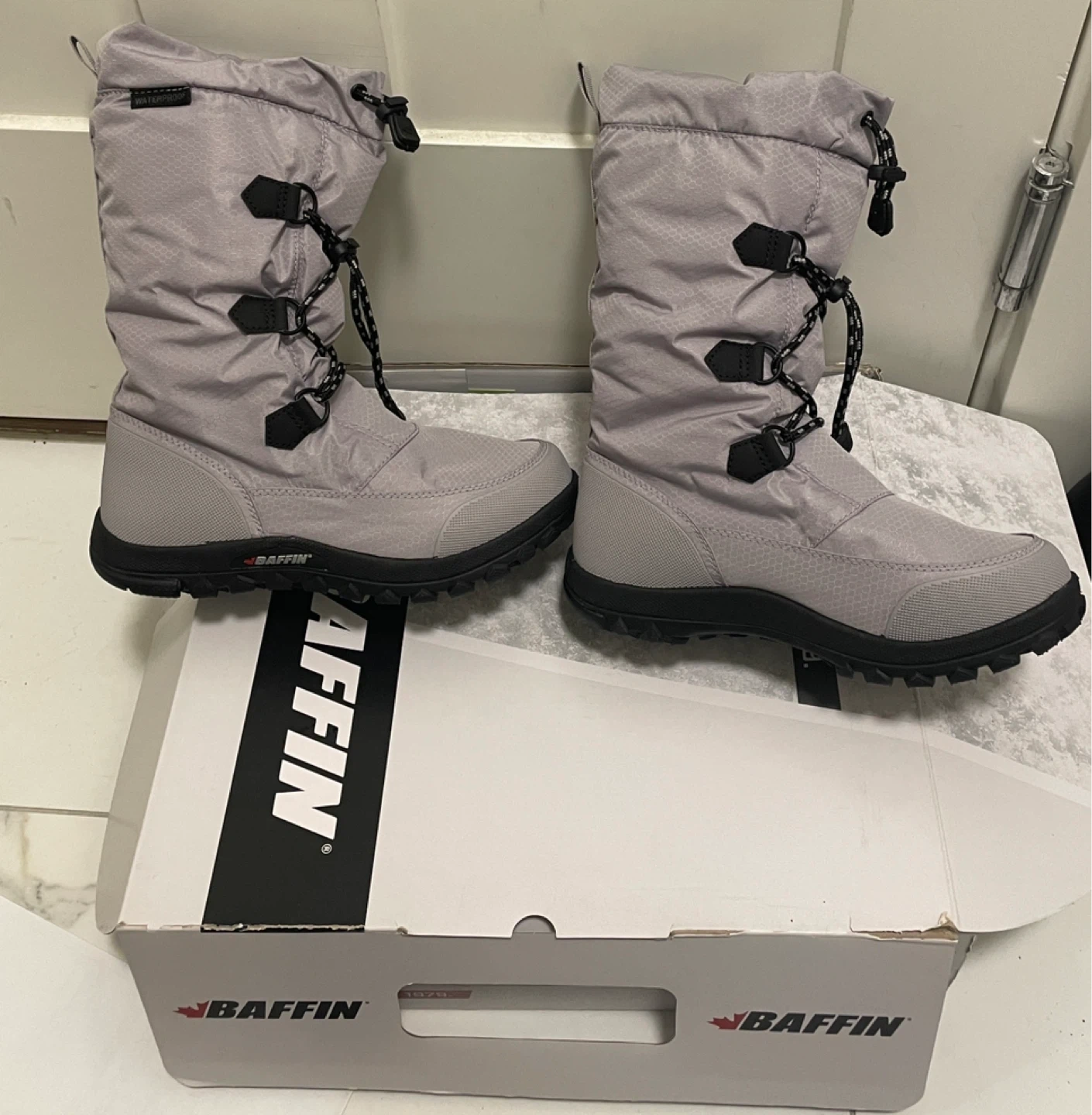 Baffin snow boots in a lovely grey colour! These boots come with their original box. They're perfect for keeping your feet warm and dry during the winter months