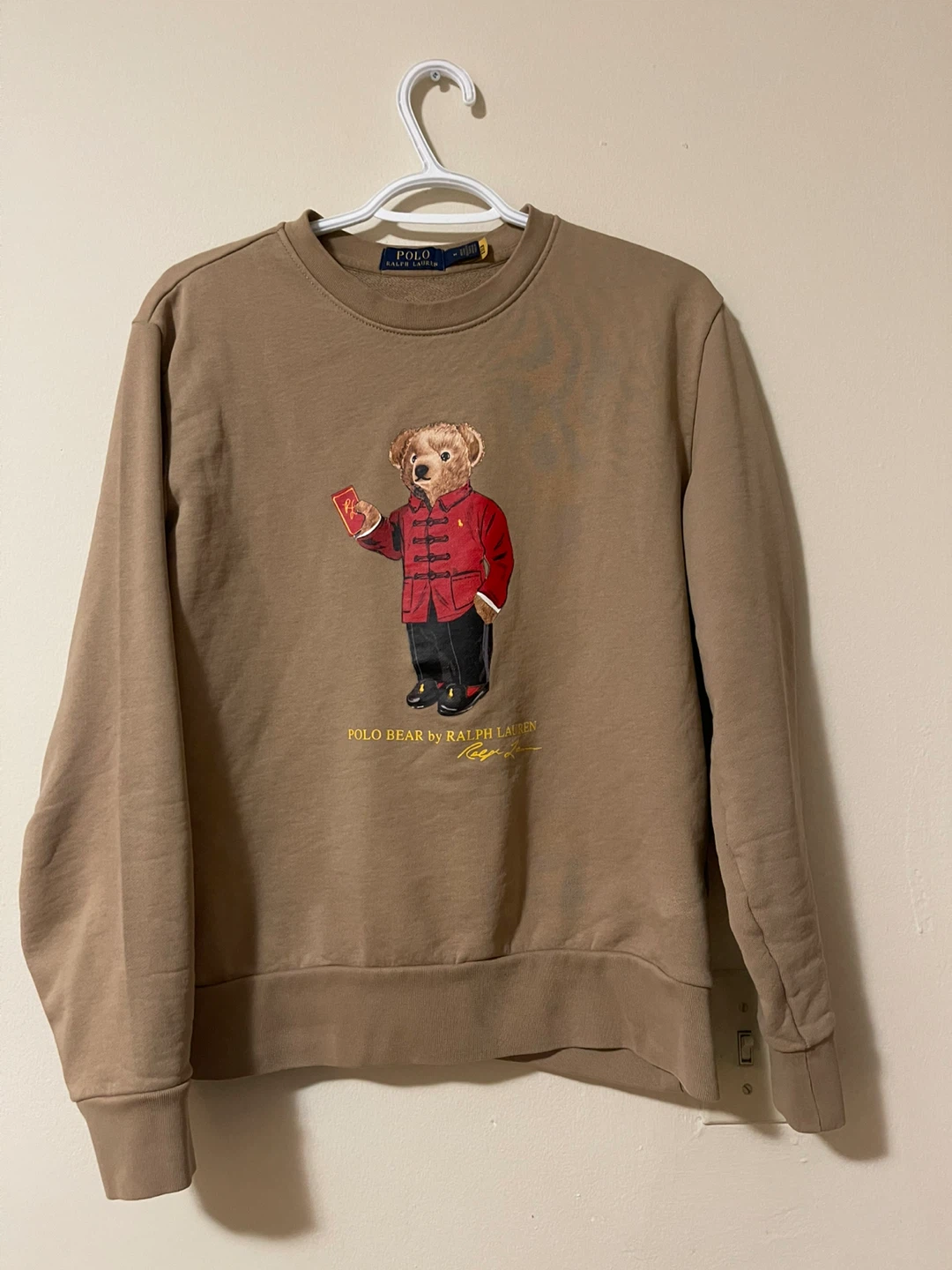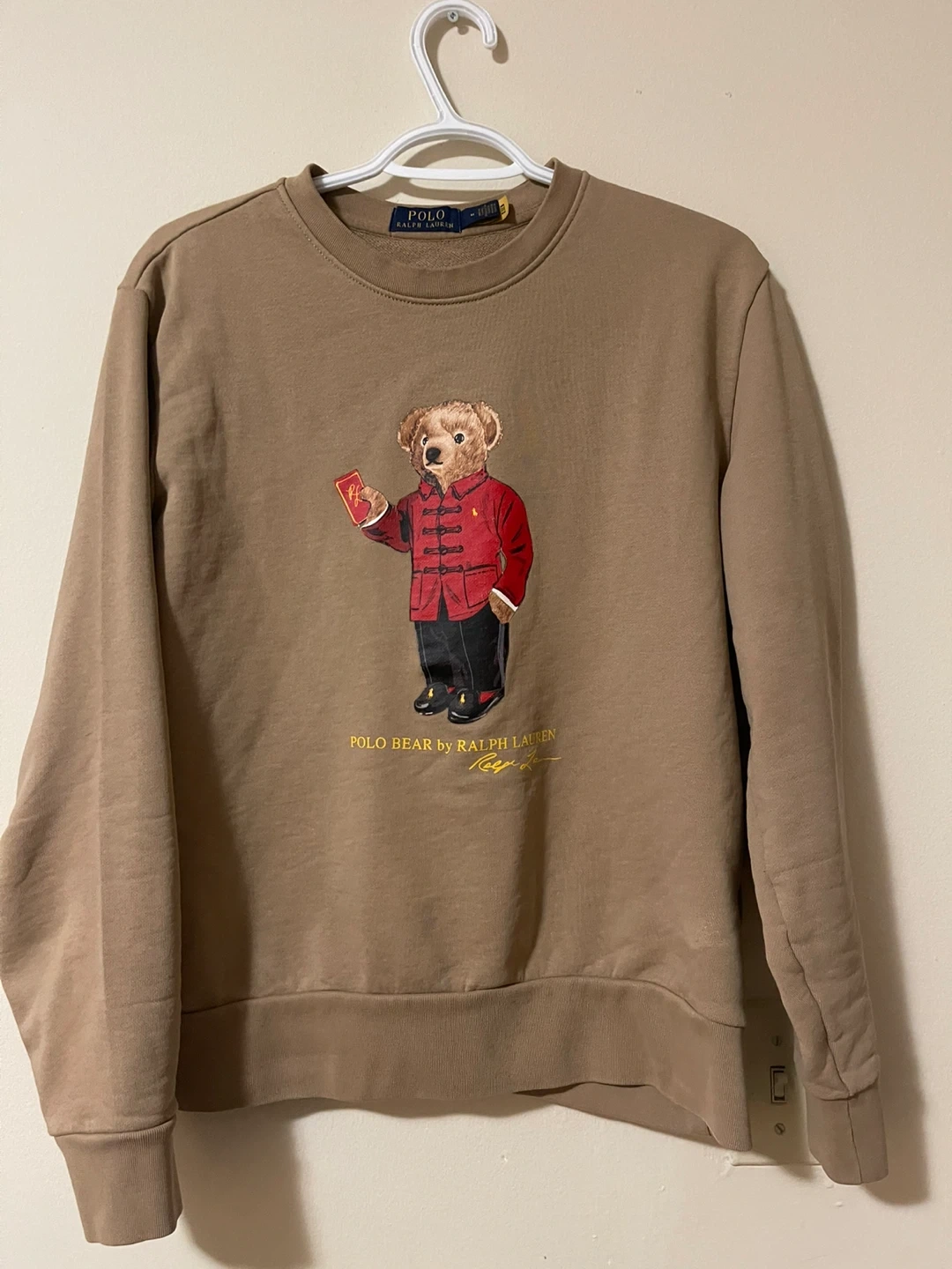 Selling a Polo Ralph Lauren crewneck featuring the iconic Polo Bear! It's a size medium and in great condition. The colour is a lovely neutral tan.
