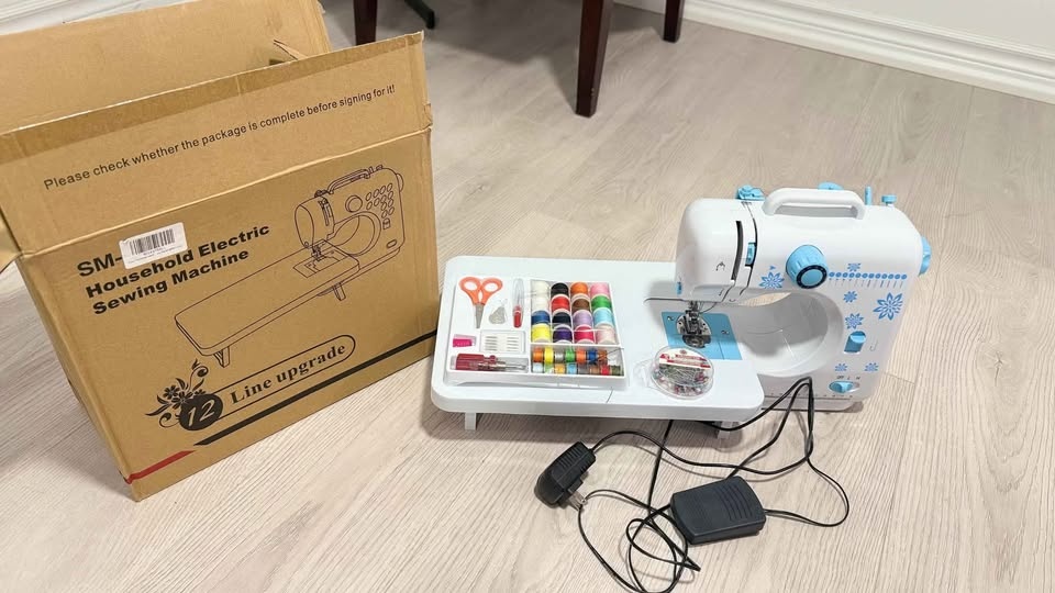 I've got a household sewing machine for sale that's ideal for personal use. It's portable, comes with its original box and all accessories, and has only been used once.