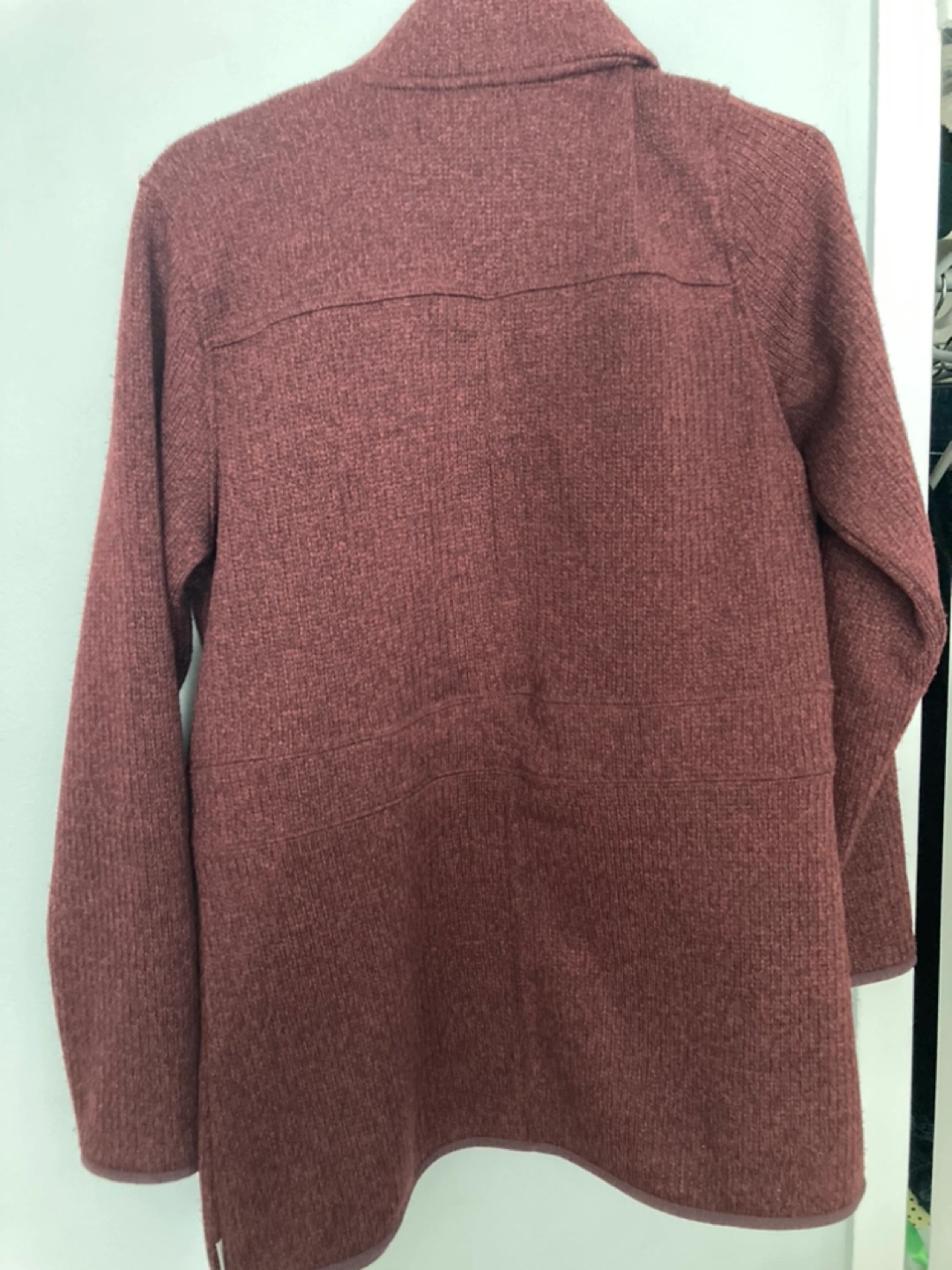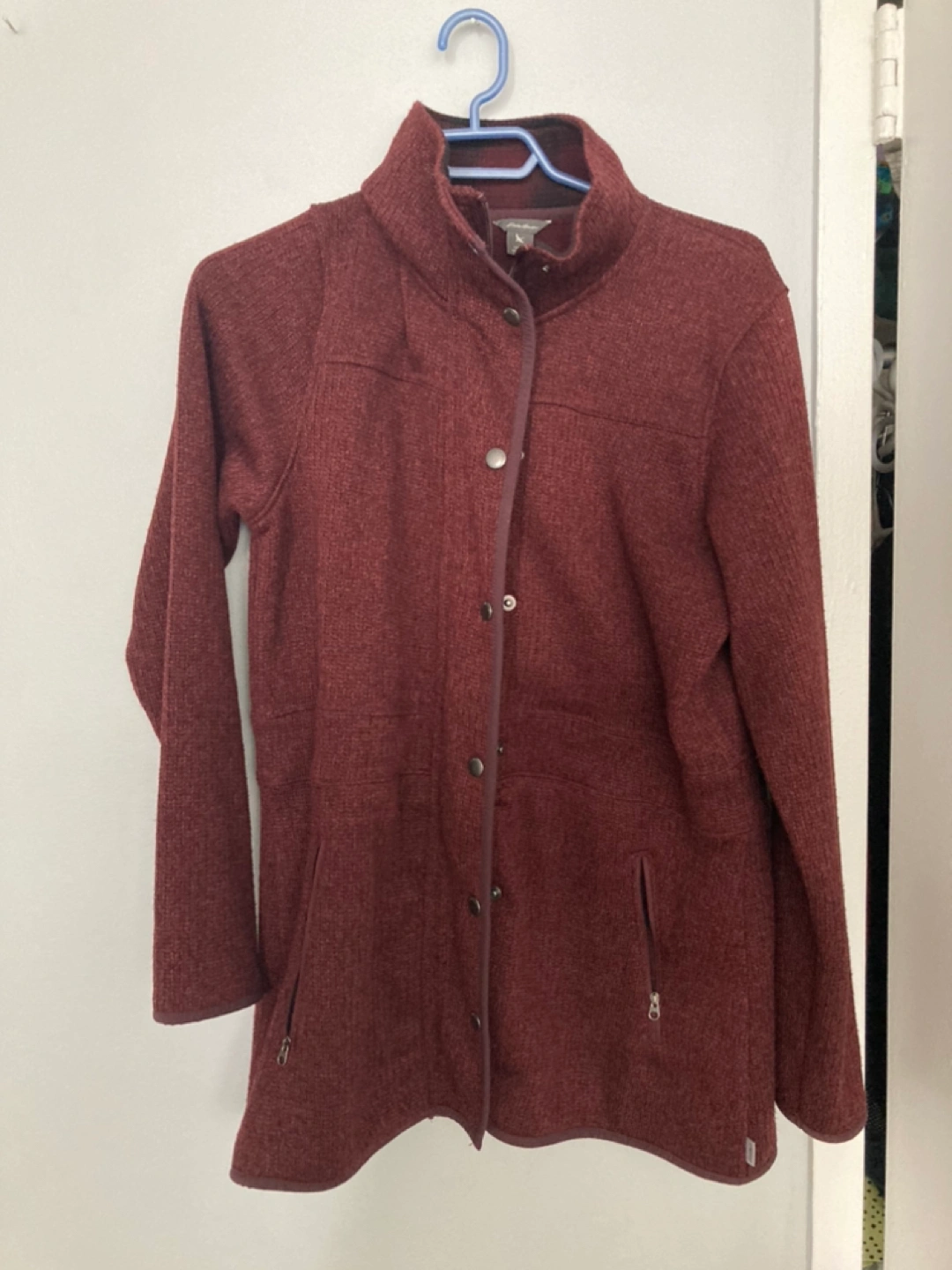 Like new. Worn once. Eddie Bauer long soft fleece sweater. Burgundy colour. Size Medium.