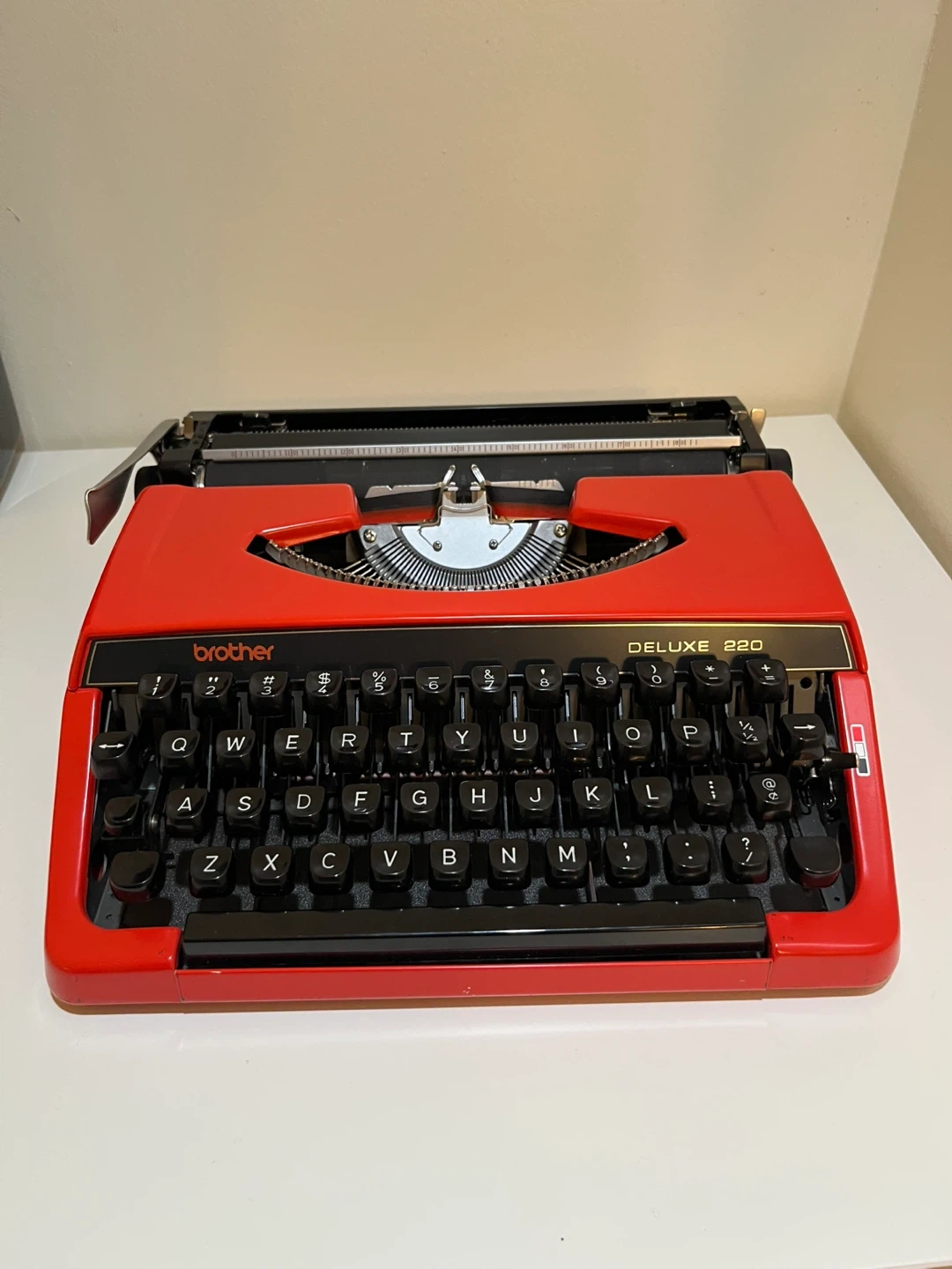 Selling a Brother Deluxe 220 typewriter in bright orange from the early 1970s. In good working condition with original carrying case. Very unique find!