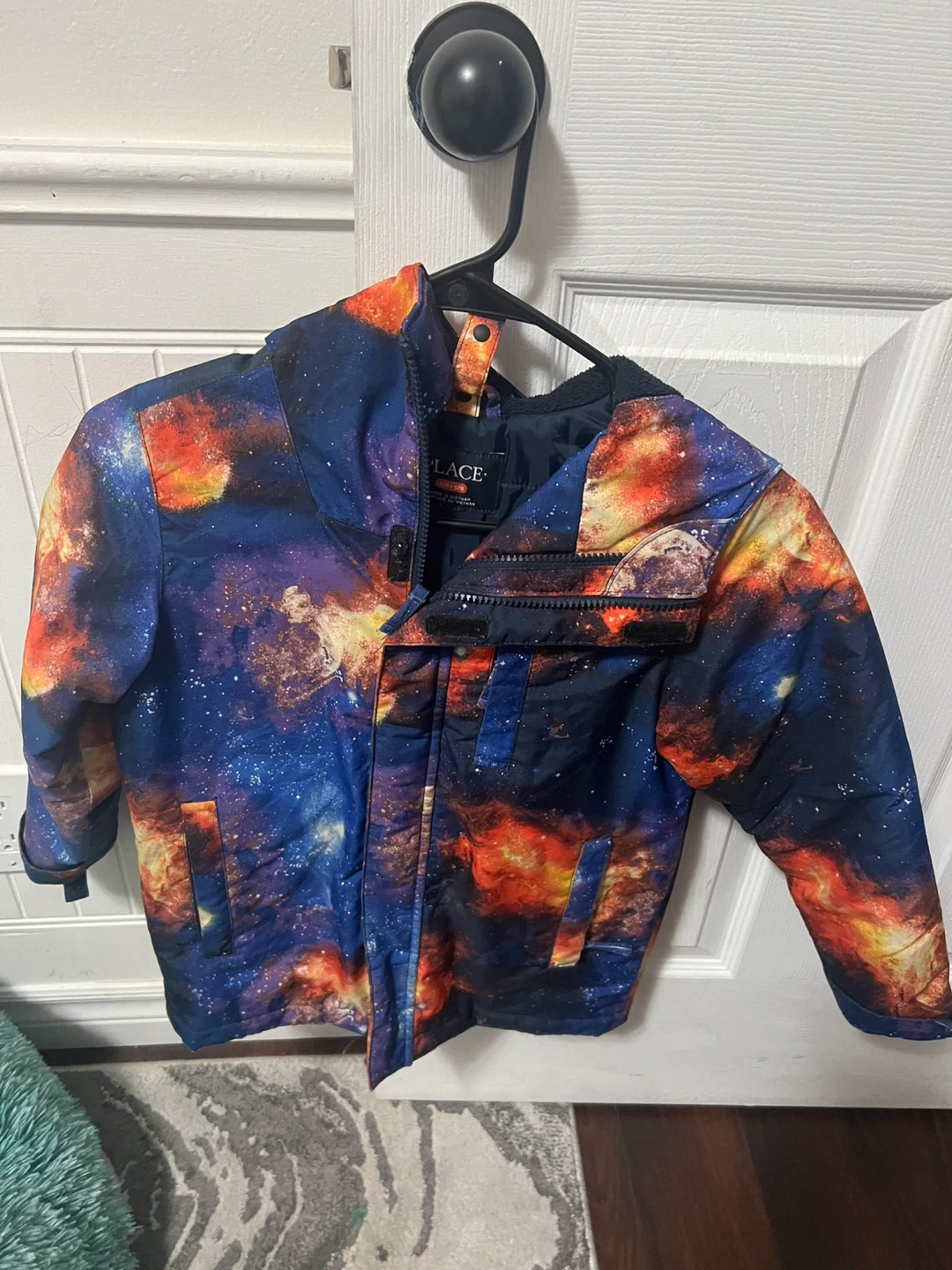 Selling a The Children's Place jacket in size S/P (5/6). The jacket has a cool galaxy print! It's in great condition and ready for a new owner