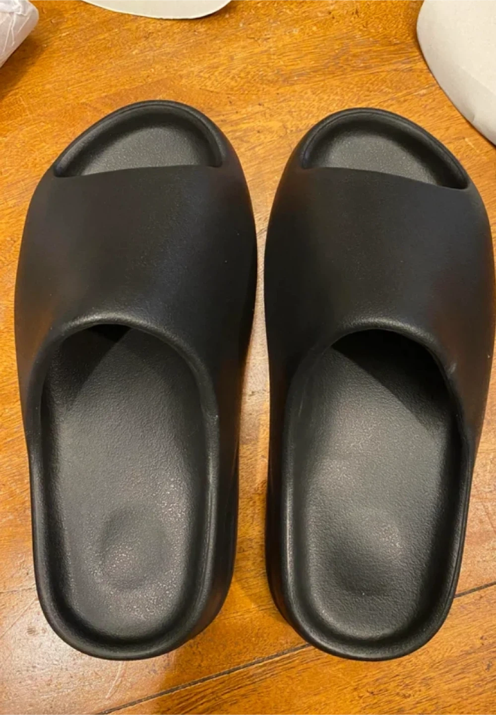 Selling a pair of black slides. They're in great condition and super comfy! Perfect for wearing around the house or running quick errands. They are lightweight and portable