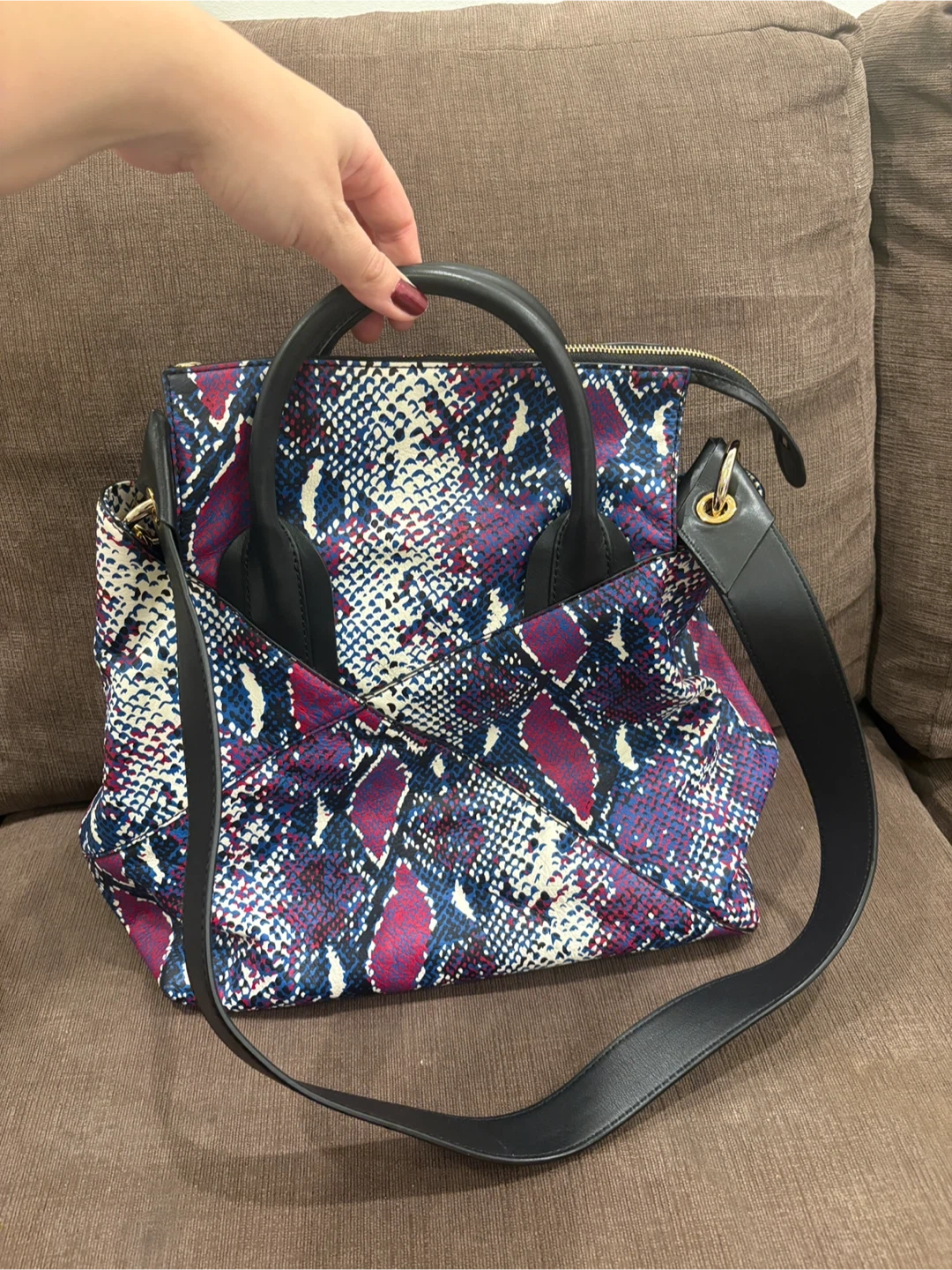 Beautiful purple, white and black mock snakeskin Diane Von Furstenberg Handbag