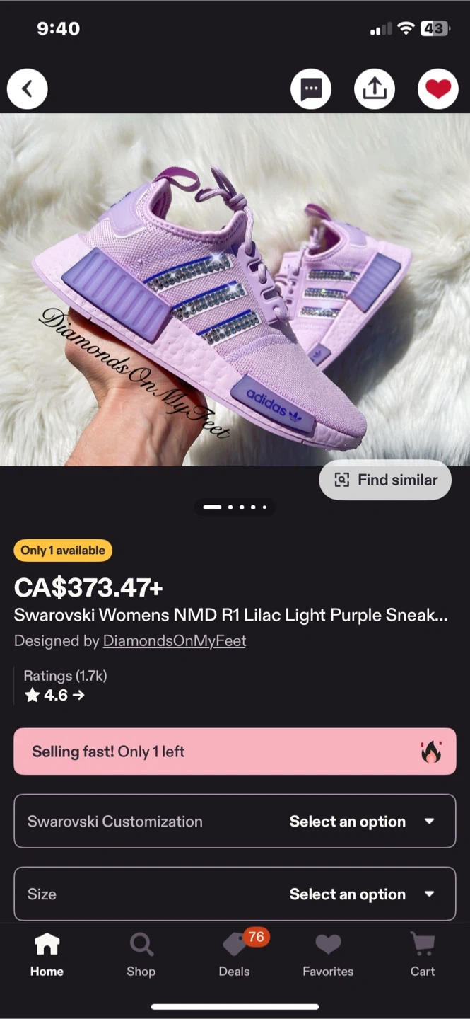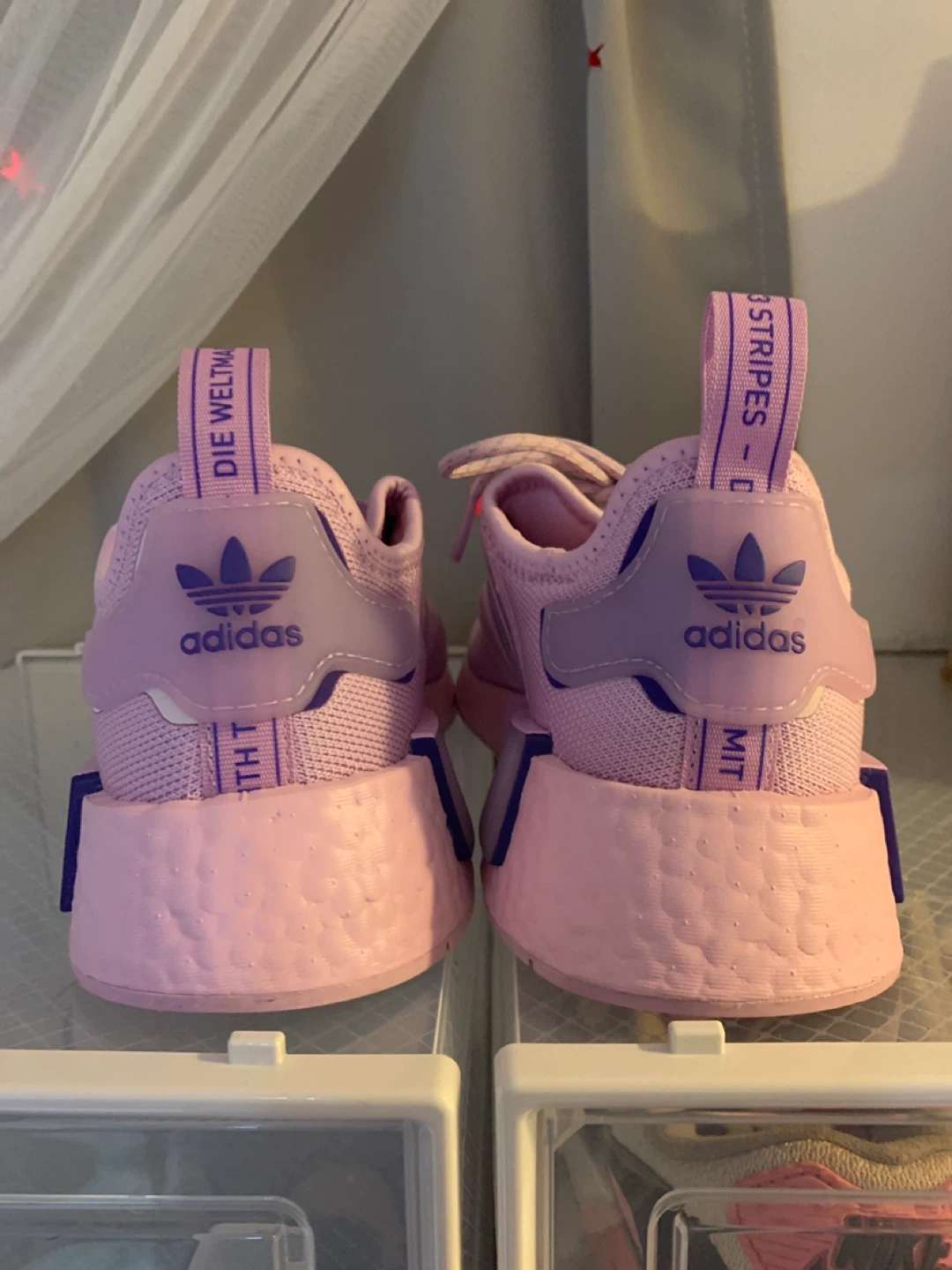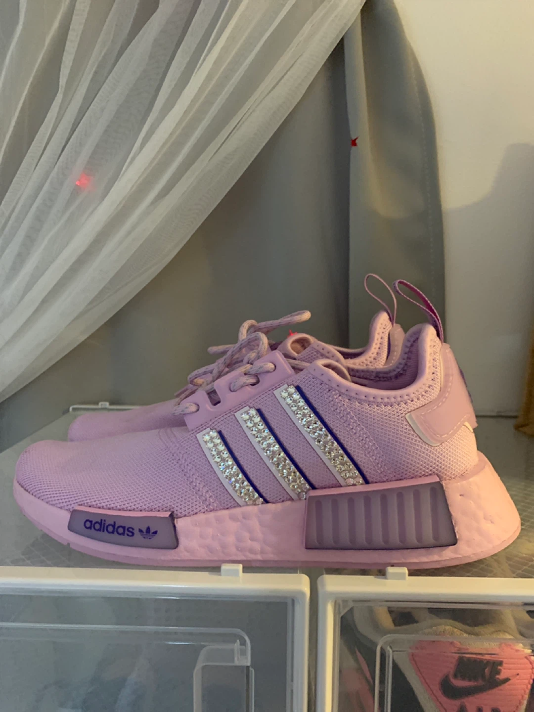 Selling a pair of Adidas NMD R1 sneakers in a lovely lilac light purple colour! These sneakers are super stylish and comfortable, perfect for everyday wear. They feature the classic Adidas three stripes with some extra bling! Check out the photos for a closer look