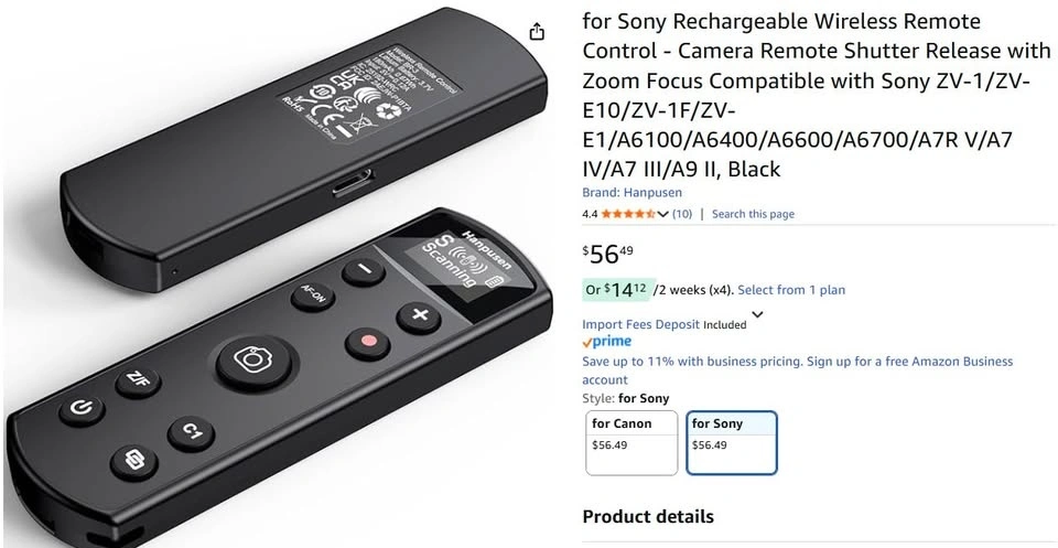 Rechargeable Wireless Camera Remote – Compatible with Sony
