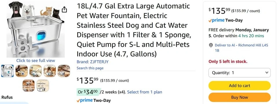 Automatic Pet Water Dispenser/Fountain – 18L / 4.7 Gallon