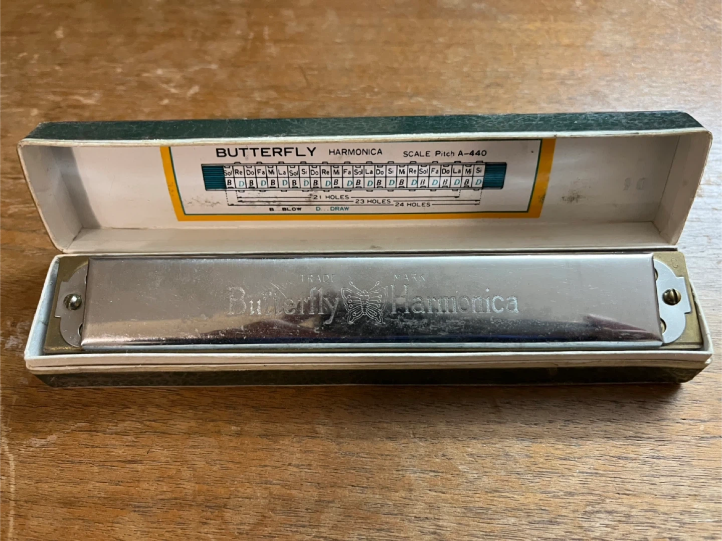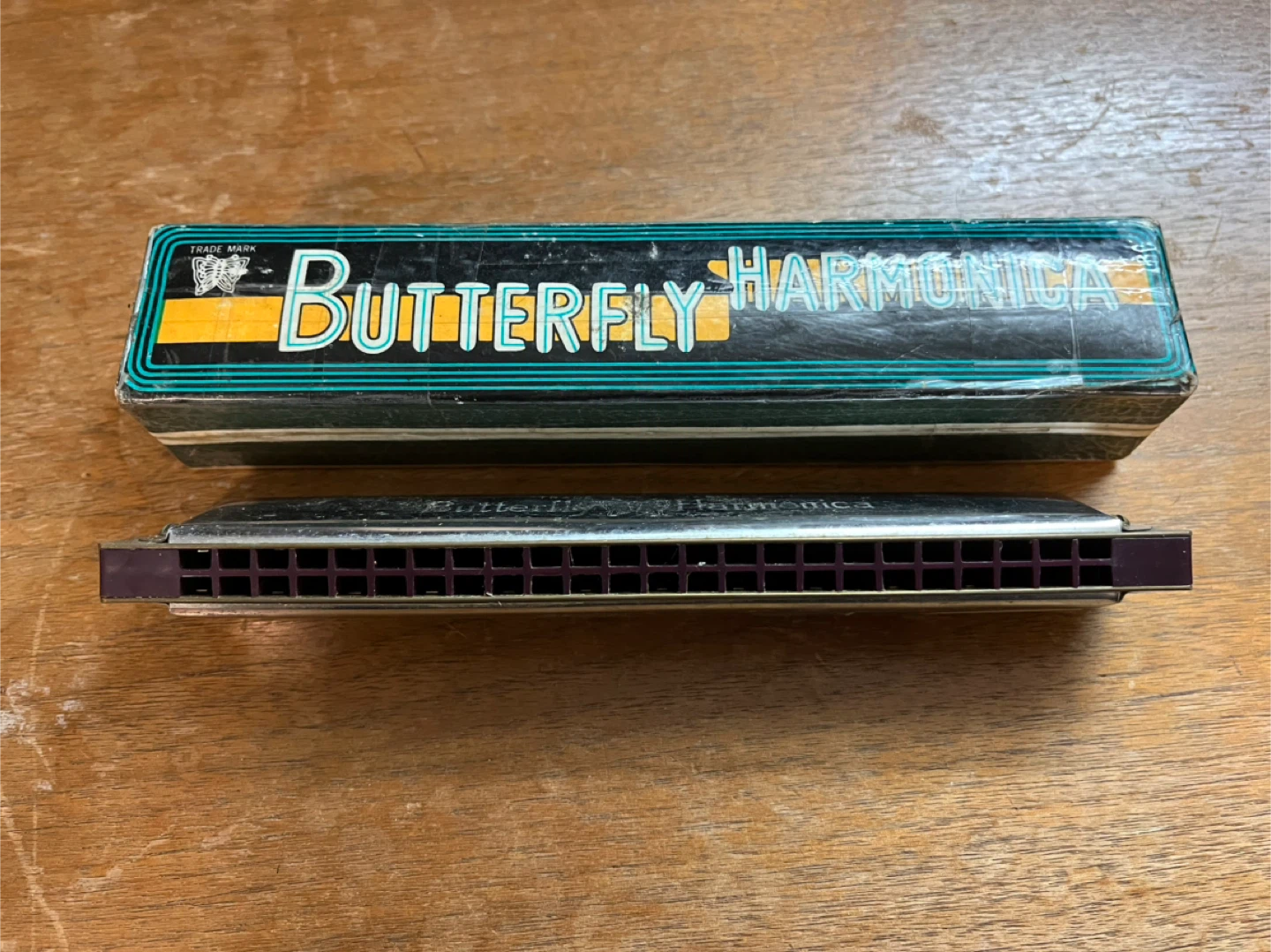 Selling a Butterfly Harmonica, complete with its original case! It's a scale pitch A-440 harmonica. Used only few times but it's still a great instrument for anyone looking to make some music.