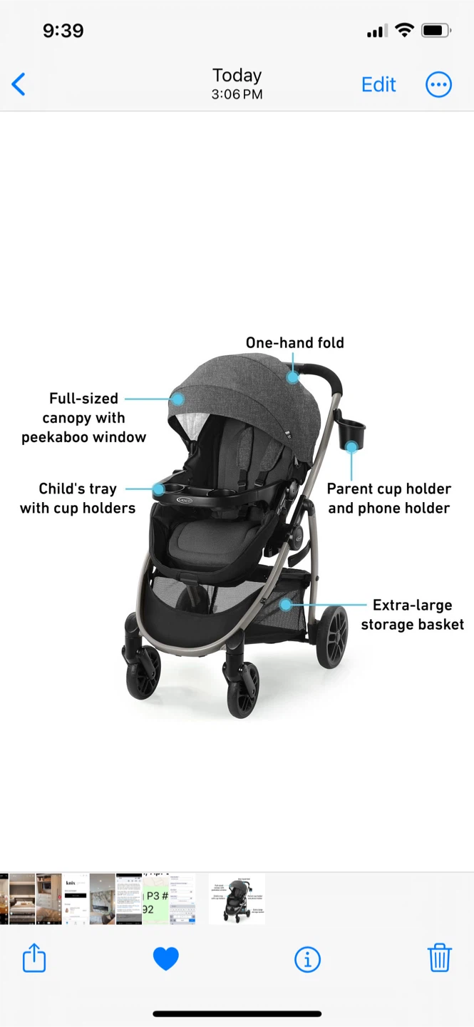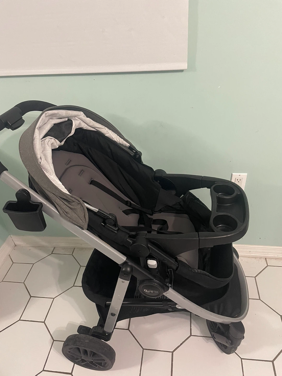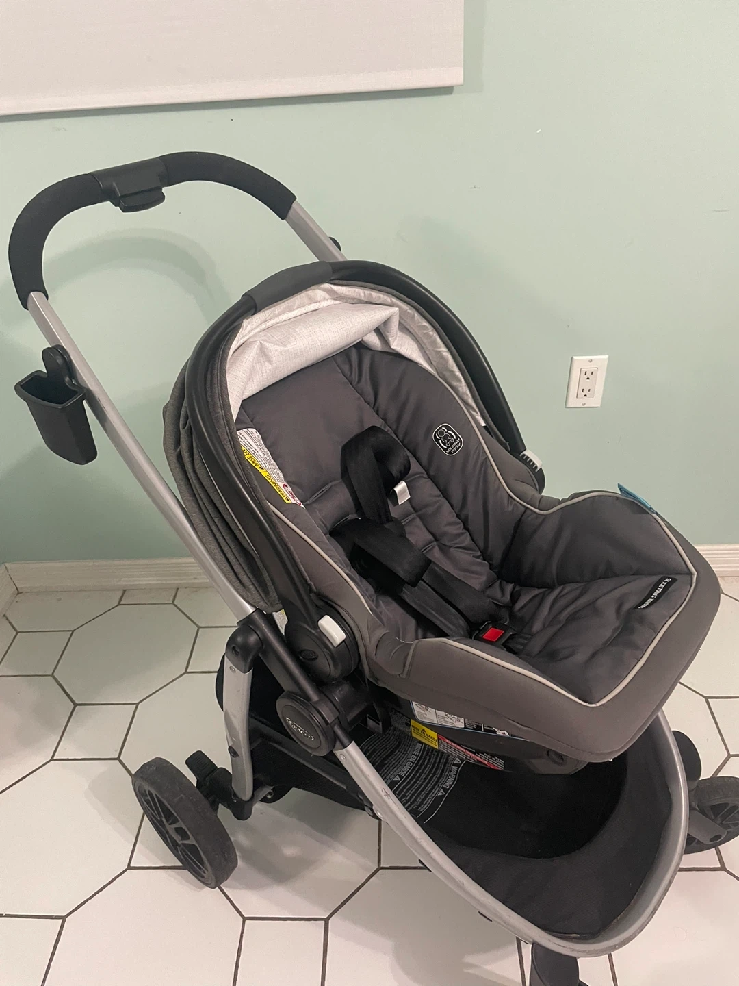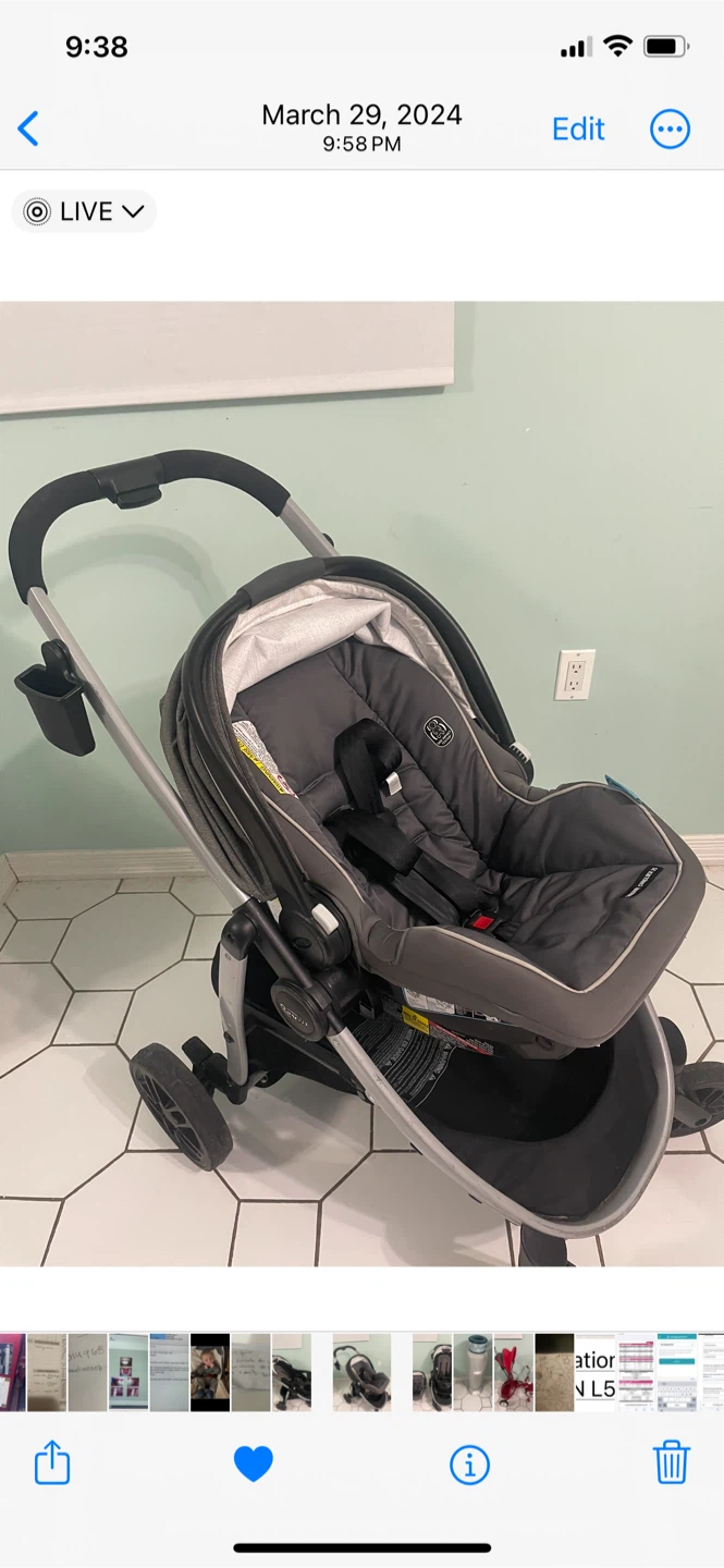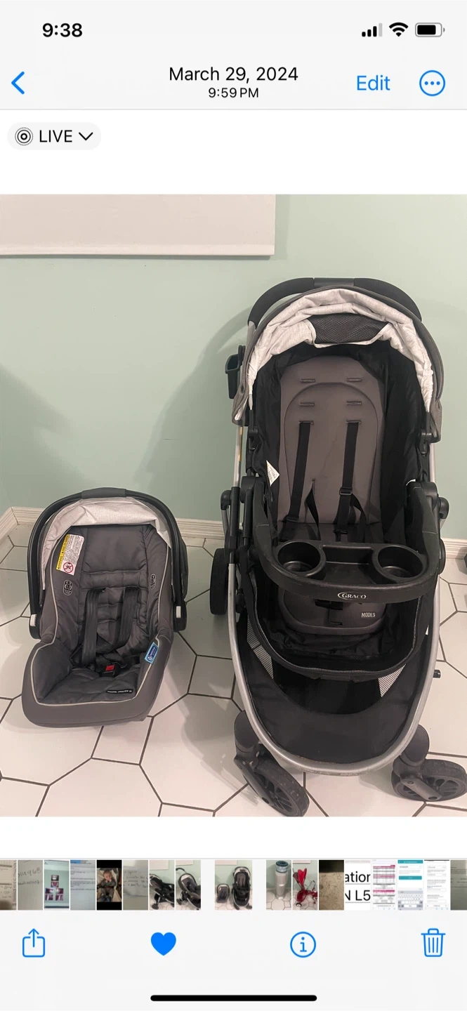 Selling a Graco Modes 3 Lite Travel System Stroller. It comes with a full-sized canopy with peekaboo window, a child's tray with cup holders, a parent cup holder and phone holder, and an extra-large storage basket!