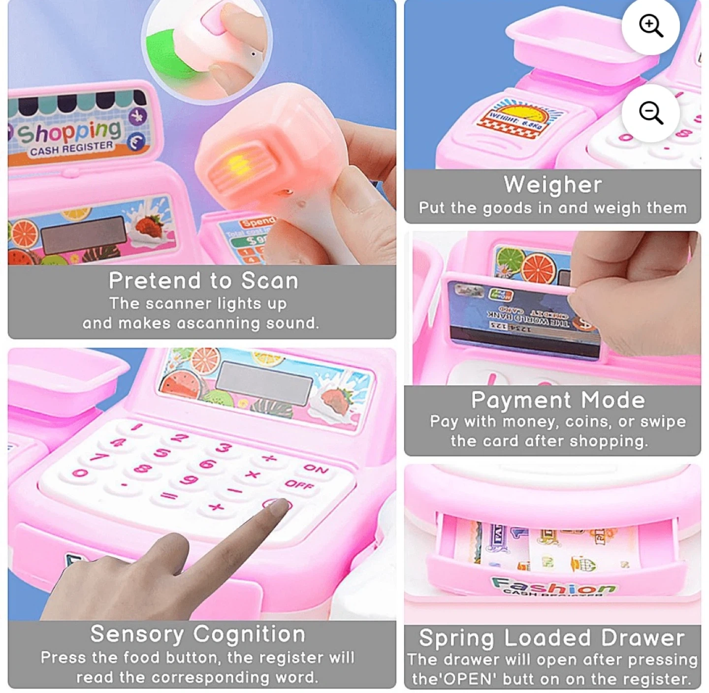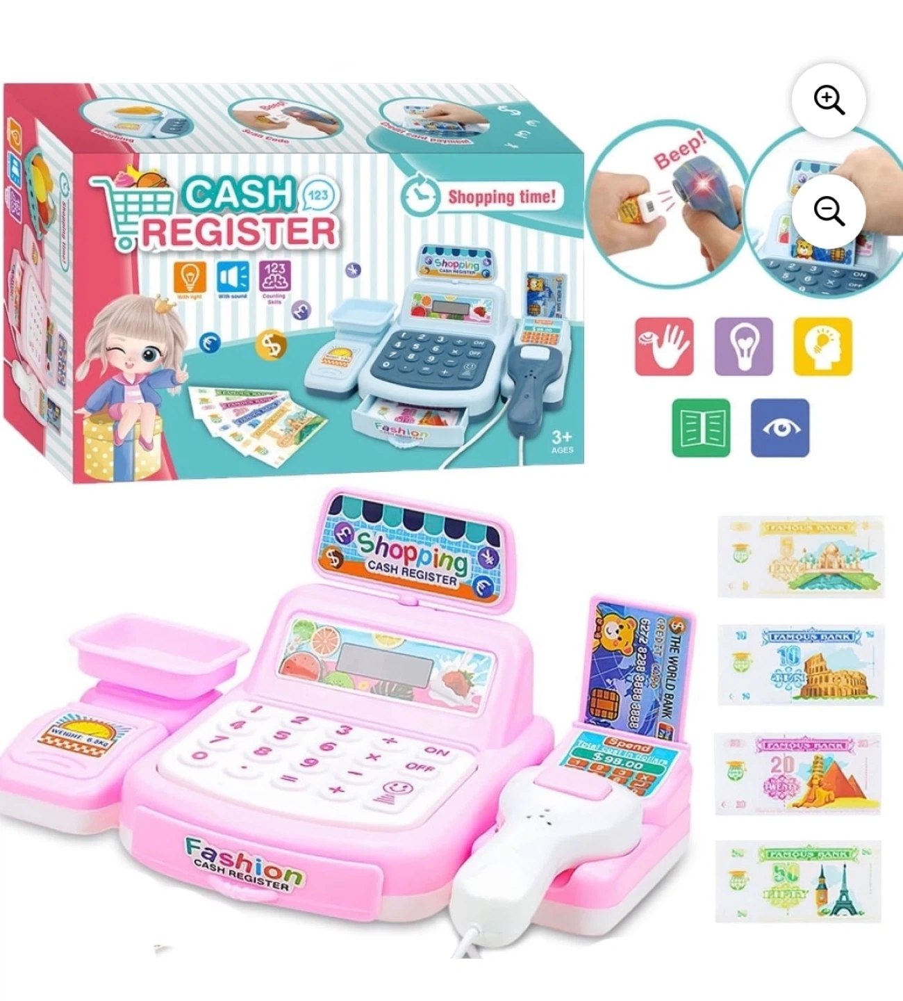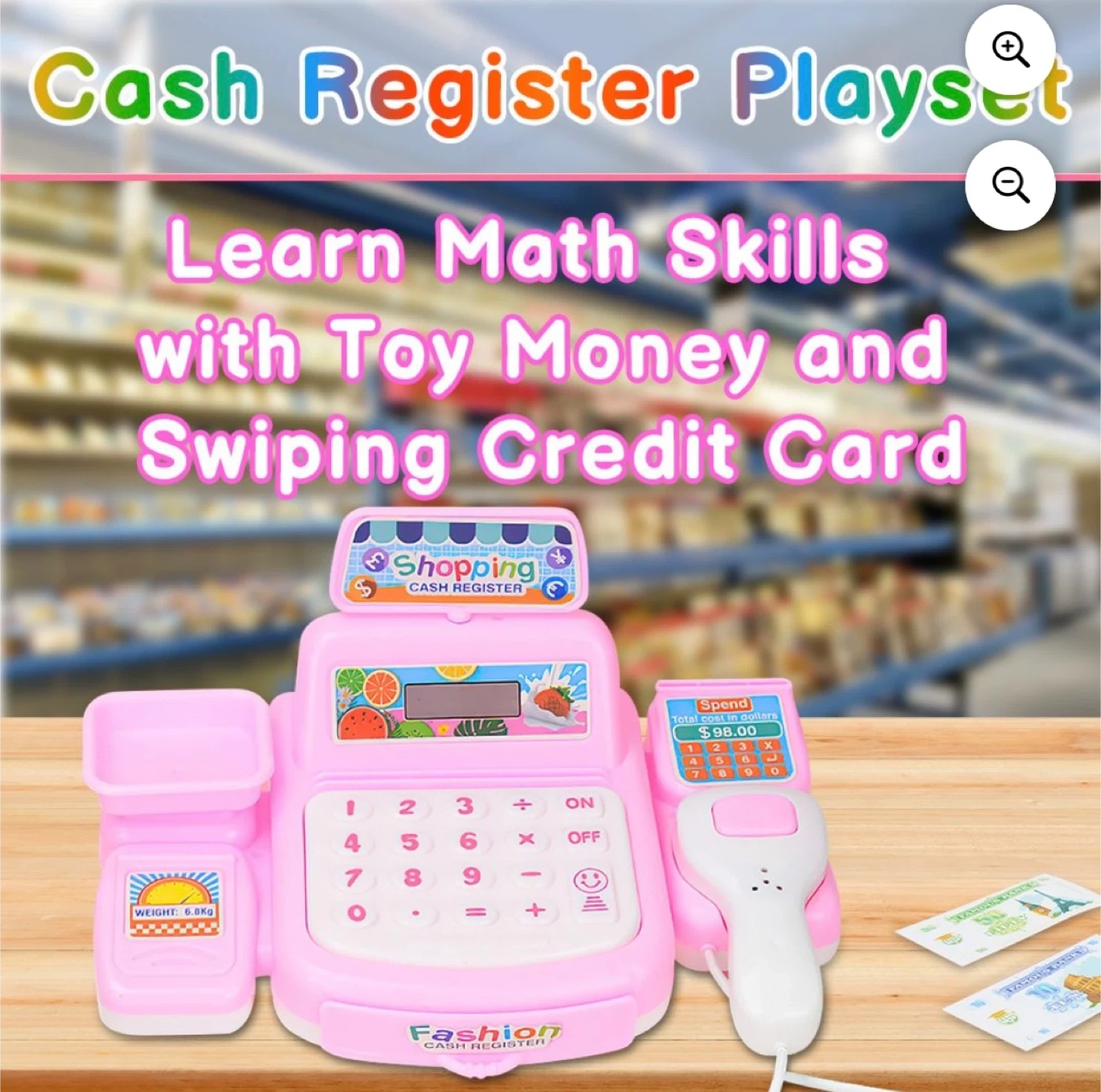 Cash Register Pretend Play Toy for Kids, Fun Supermarket Shop Toys, Cute Cash Register Toy with Working Scanner, Credit Card, Pretend Play Money, Christmas Birthday Gifts for Boys Girls,Pink