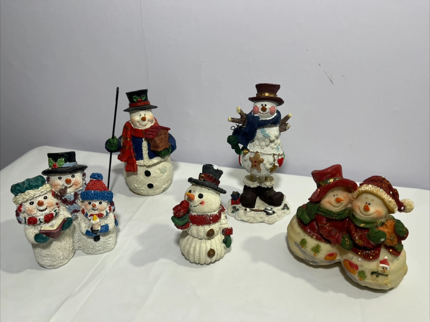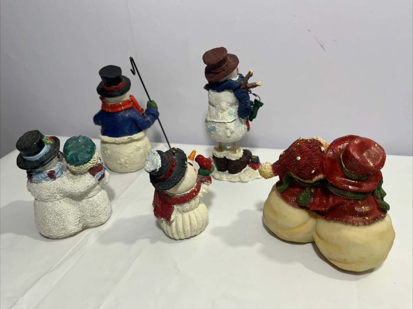 Here's a cute set of snowman figurines! They're perfect for adding a touch of winter charm to your home decor. They are in great condition and ready to bring some holiday cheer!