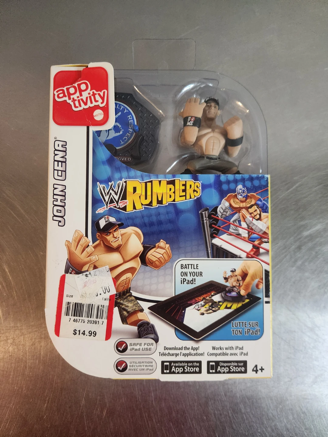 Selling a John Cena WWE Rumblers Apptivity figure. This figure is compatible with the iPad app for interactive gameplay. It includes one figure, one base, and one card. Great for WWE fans!
