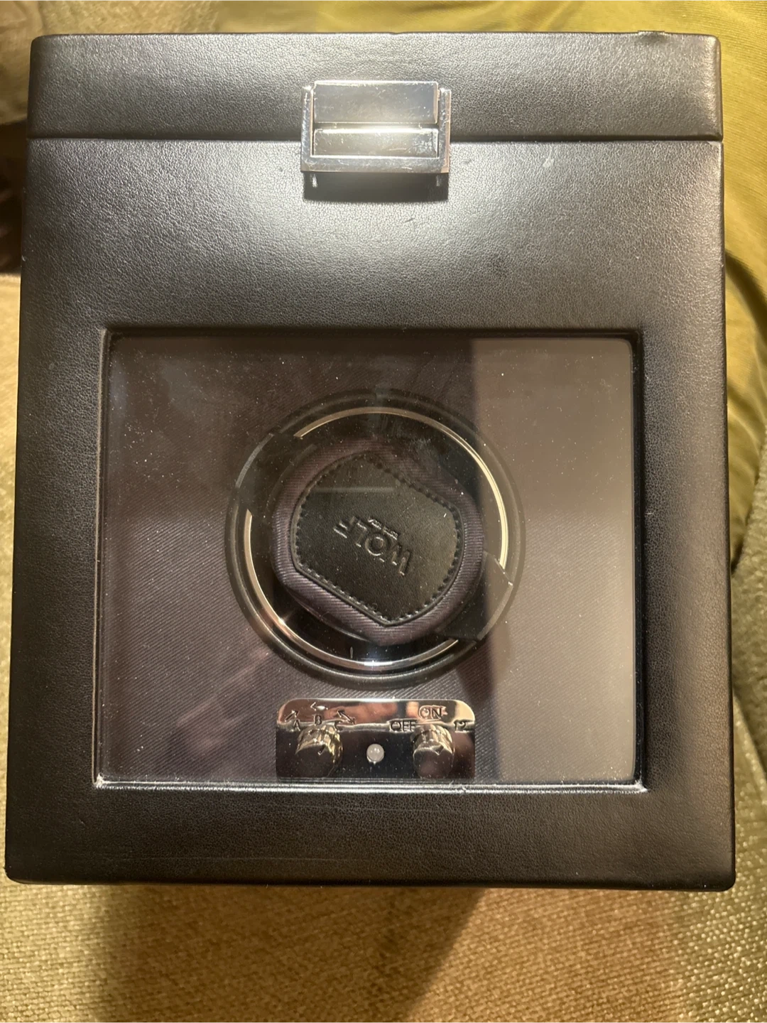 Selling a Wolf watch winder for a single watch! It's in great condition and ready to keep your automatic watch wound and ready to wear. No cord - battery operation