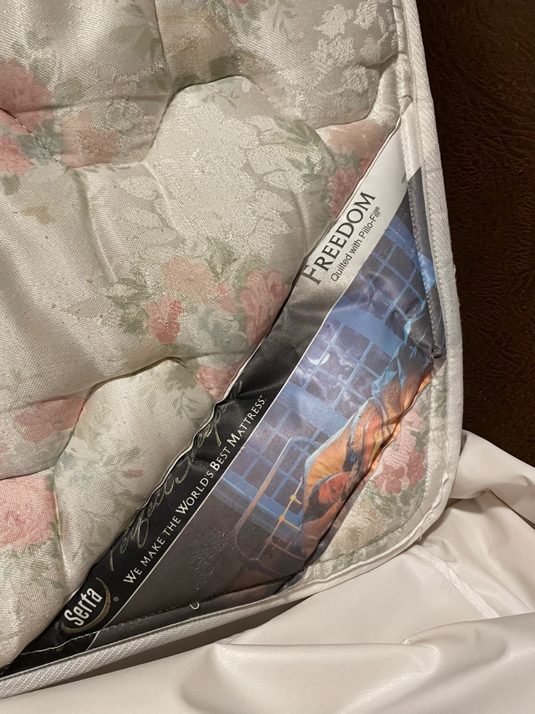 Selling a Serta Freedom mattress, quilted with Pillo-Fill. It's in good condition and ready for a new home! Comes with mattress cover as shown in photos that has been used the whole time!