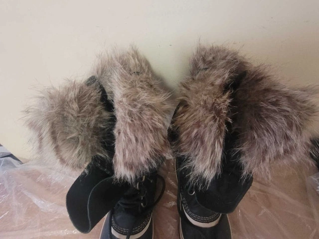 For sale is this nice pair of like new SOREL HAND CRAFTED SUEDE LEATHER WATERPROOF WINTER BOOTS WOMAN SIZE 8 OR MAN SIZE 6 IN EXCELLENT CONDITION. THE BAD IS IT AS A MISSINS snap closure easily and cheap to replace. Asking $55 pick up on beaverbrook lane Kanata thank you