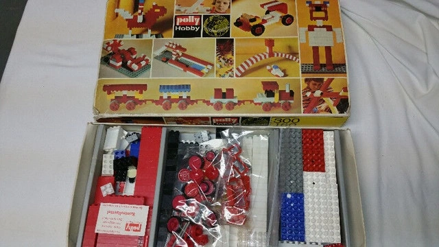 Up for sale is a Polly Hobby International building block kit no. 300/160 (pictured). Made in Germany in the 1970s. It's in its original box and has 409 pieces including doors, windows, wheels, tires and more. The item may have some signs of cosmetic wear, but is fully operational and functions as intended. Nice condition for its age. See pictures for more details. Sold as is and may need cleaning. There may be minor factory imperfections & minor surface scratches.