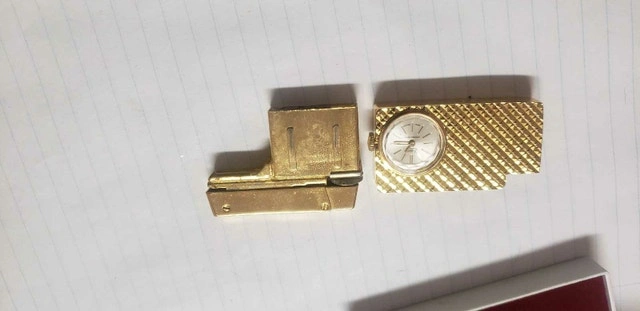 VINTAGE SHEFFILD SWISS MADE wind up WATCH LIGHTER. The lighter has not been used in the last 60 years or so. The clock is in excellent working condition. The lighter is in near mint condition with very small scratches. Would need a flint and butane to use. Asking $200. Pick up on Beaverbrook Lane in Kanata. Thank you