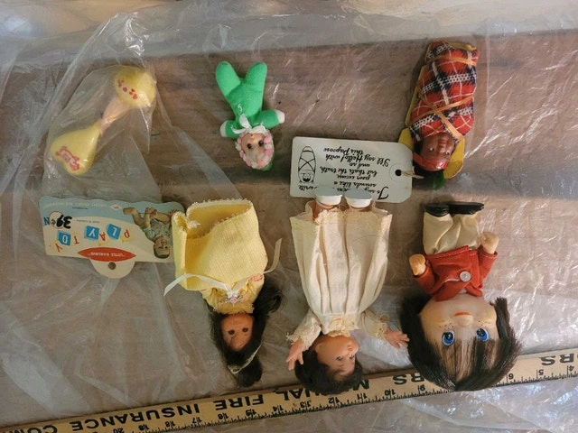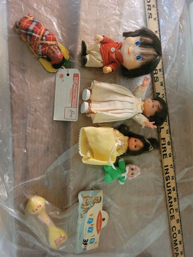 For sell is this Lot of 5 Vintage Collectable Child Dolls and 1 babby rattler. Including is one hand made Native Babby made by Some Native Tribe all are in excellent condition asking $50 for the lot pick up on beaverbrook lane Kanata thank