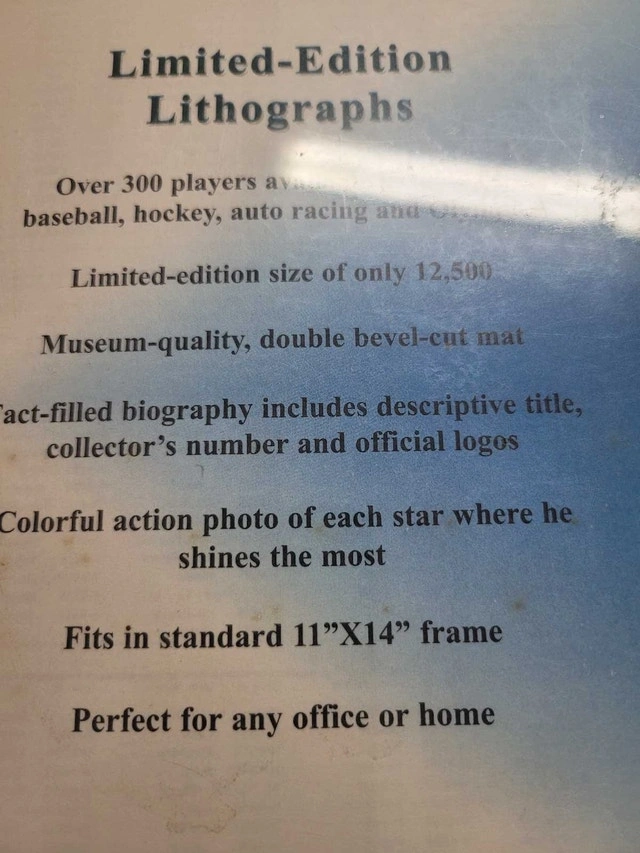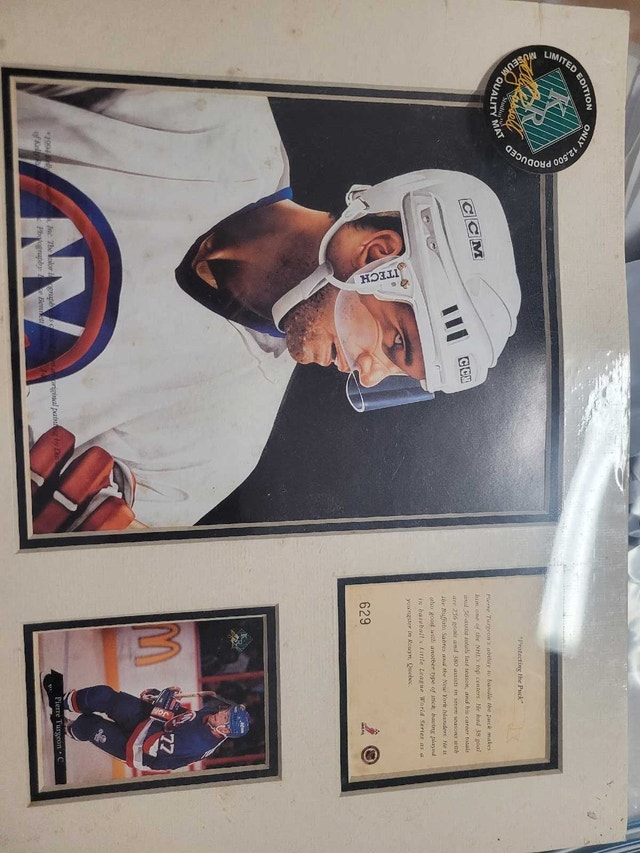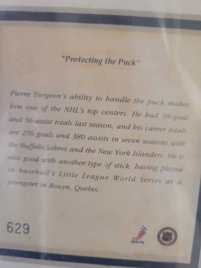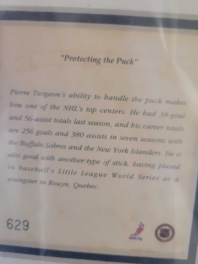 For sell is this 1994 Pierre Turgeon Legends Superstars Collectable poster card still plastic wrap but I can see small stain under the plastic but still in very good condition this is number 626 of only 12,500 made asking $20 pick up on beaverbrook lane Kanata thank you
