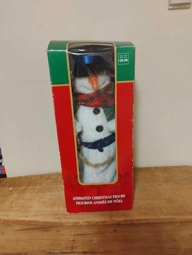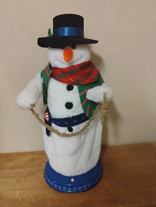 The Cowboy Snowman Dancing Light up I'm Gonna Lasso Santa Claus Gemmy 2004 works great and sounds great too. In near Mint condition. 20 " high. Works on battery and an AC adapter It doesn’t come with a cord but it has the connection for one. It looks really cute. I have a box for it but it's not the original box . Asking $100 pick up on Beaverbrook Lane Kanata thank you