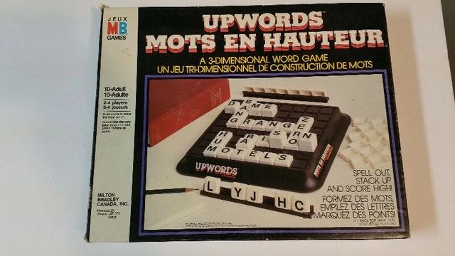 * 1983 "UpWords" 3-Dimensional Words Game Milton Bradley (complete, excellent condition, box has some shelf wear, one box has tape)