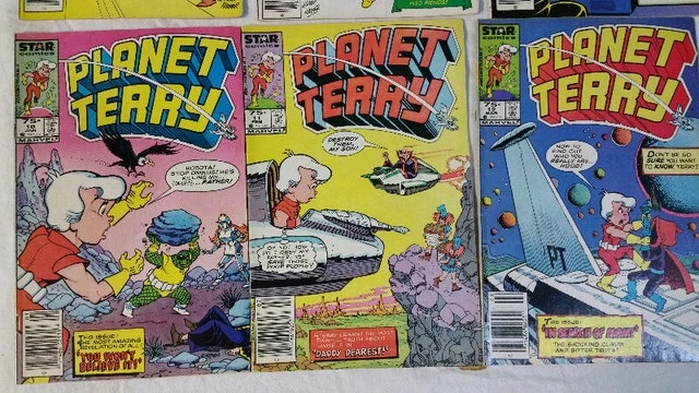 About Star Comics: Star Comics was an imprint of Marvel Comics that began in 1984 and continued to publish comic books until early 1988. Following that, the titles carried the Marvel Comics logo instead of the Star Comics one. Titles published by the imprint were aimed at child readers and were often adaptations of children's television series, animated series or toys. Several of the original titles consciously emulated the house writing and visual style of then recently defunct Harvey Comics titles such as Richie Rich. Planet Terry was a science fiction comic book aimed at young children. The title lasted 12 issues, from April 1985 to March 1986. The title was authored by Lennie Herman, the writer of Star Comics books Top Dog and Royal Roy, and illustrated by artist Warren Kremer, who had previously worked for Harvey Comics.