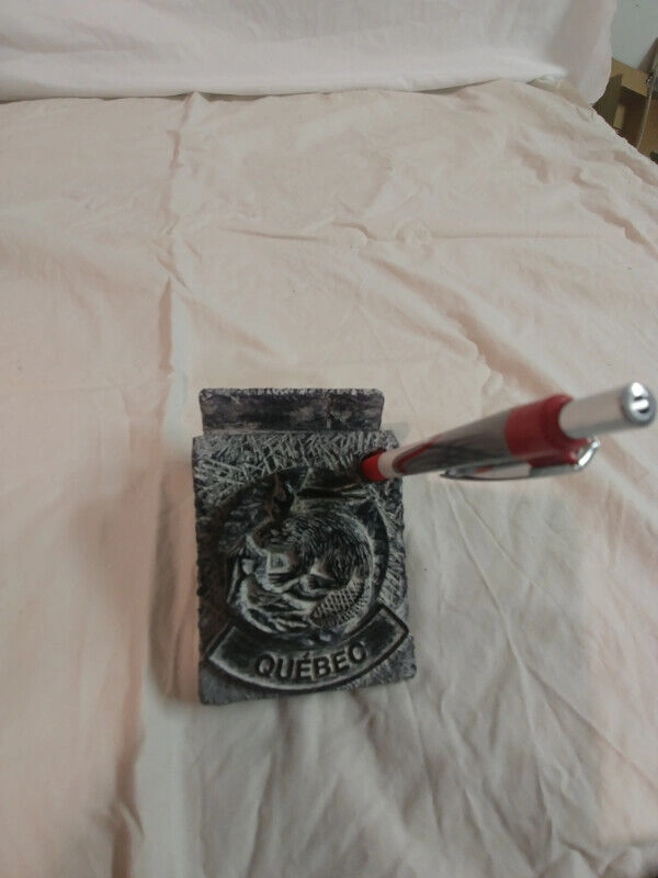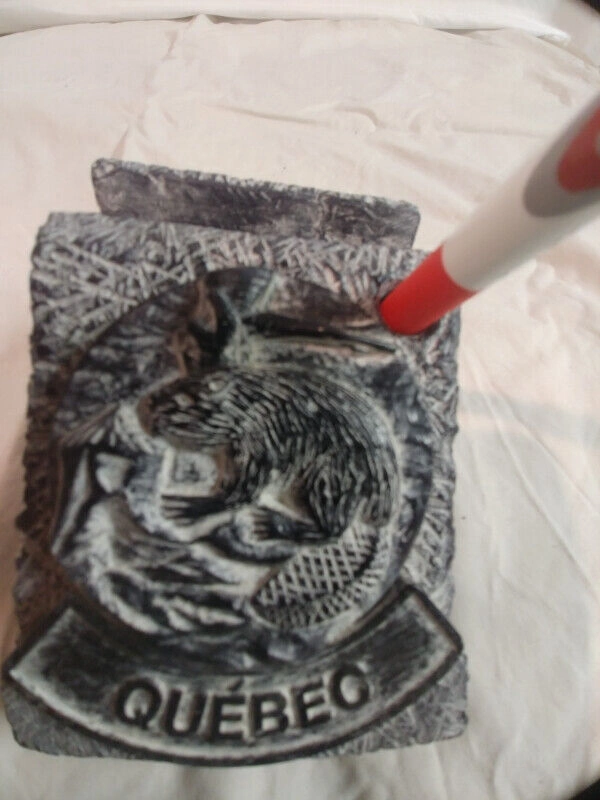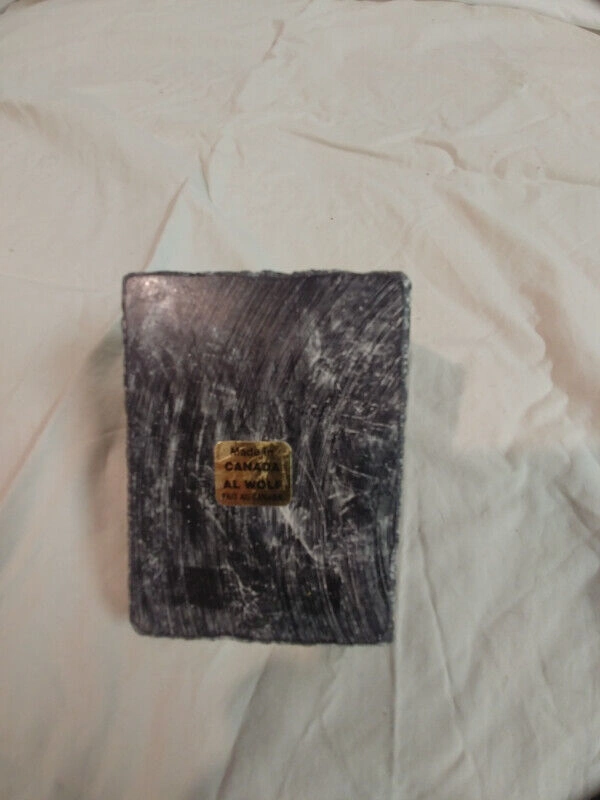 Up for sale is this soap stone Quebec Beaver pen and envelope holder made in Canada by Al Wolf in excellent condition. It is 4.5 inches long by 2.5 inches high by 3 1/4 inches wide and weighs 640 grams.