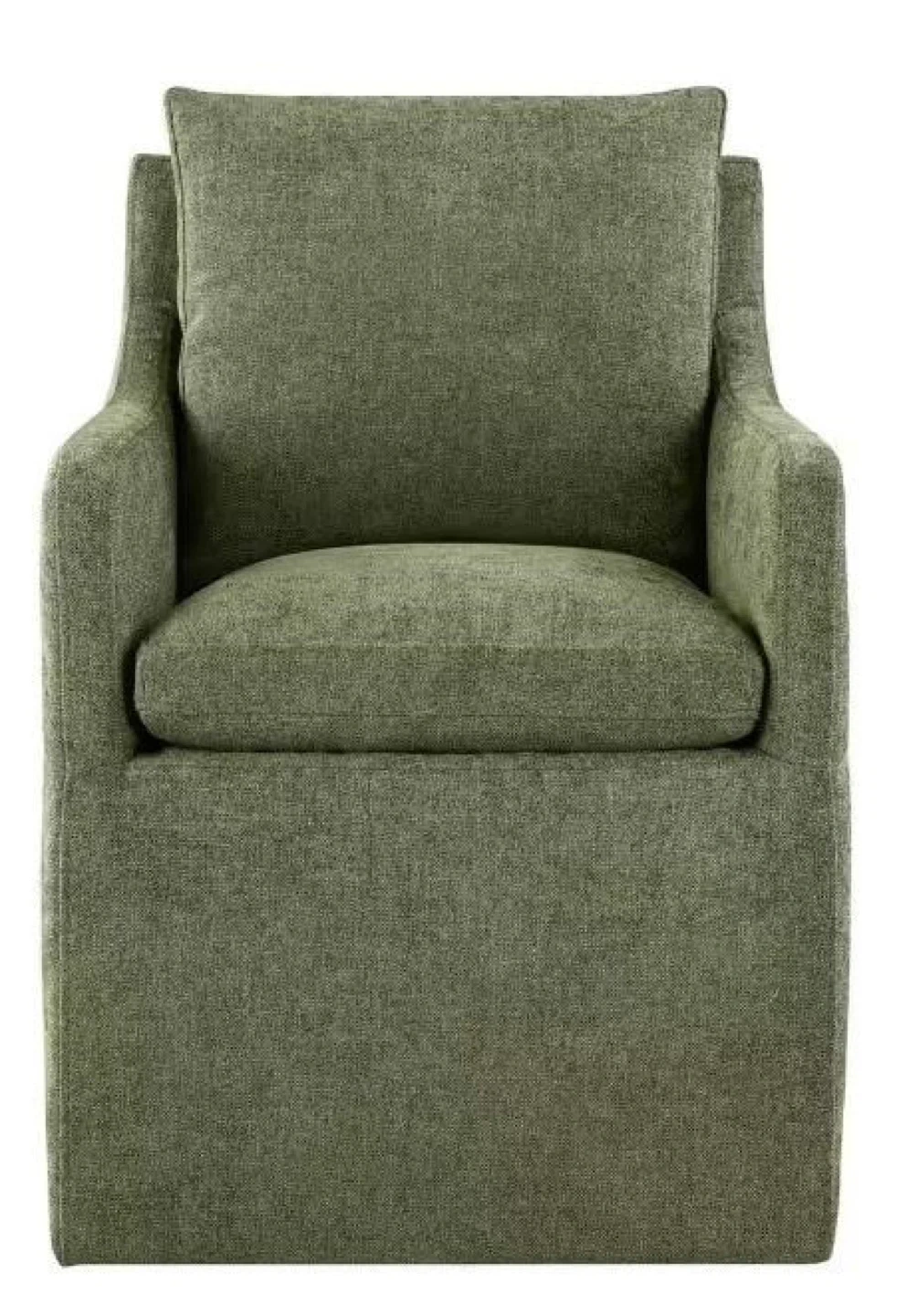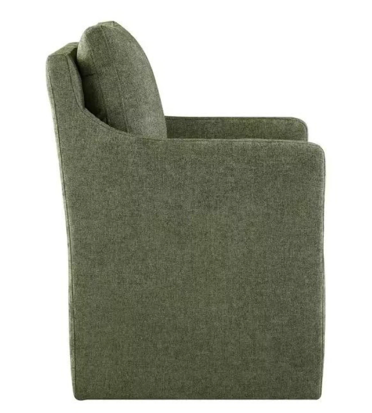 Selling a comfy green swivel barrel chair! It's in great shape and would be a perfect addition to any living room or bedroom. It has a nice, neutral tone that fits well with most decor styles. It's super comfortable for reading or just relaxing after a long day