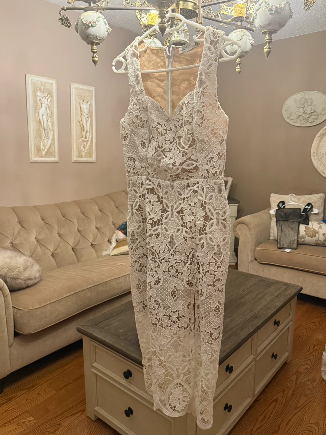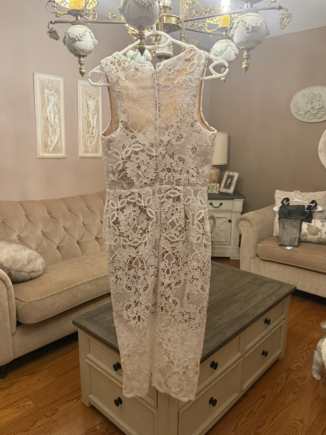 Selling a lovely Dex Occasion lace dress in size small! It's a beautiful piece, perfect for a special event or occasion. The dress features intricate lace detailing and a flattering silhouette. It's in great condition and ready for a new home!