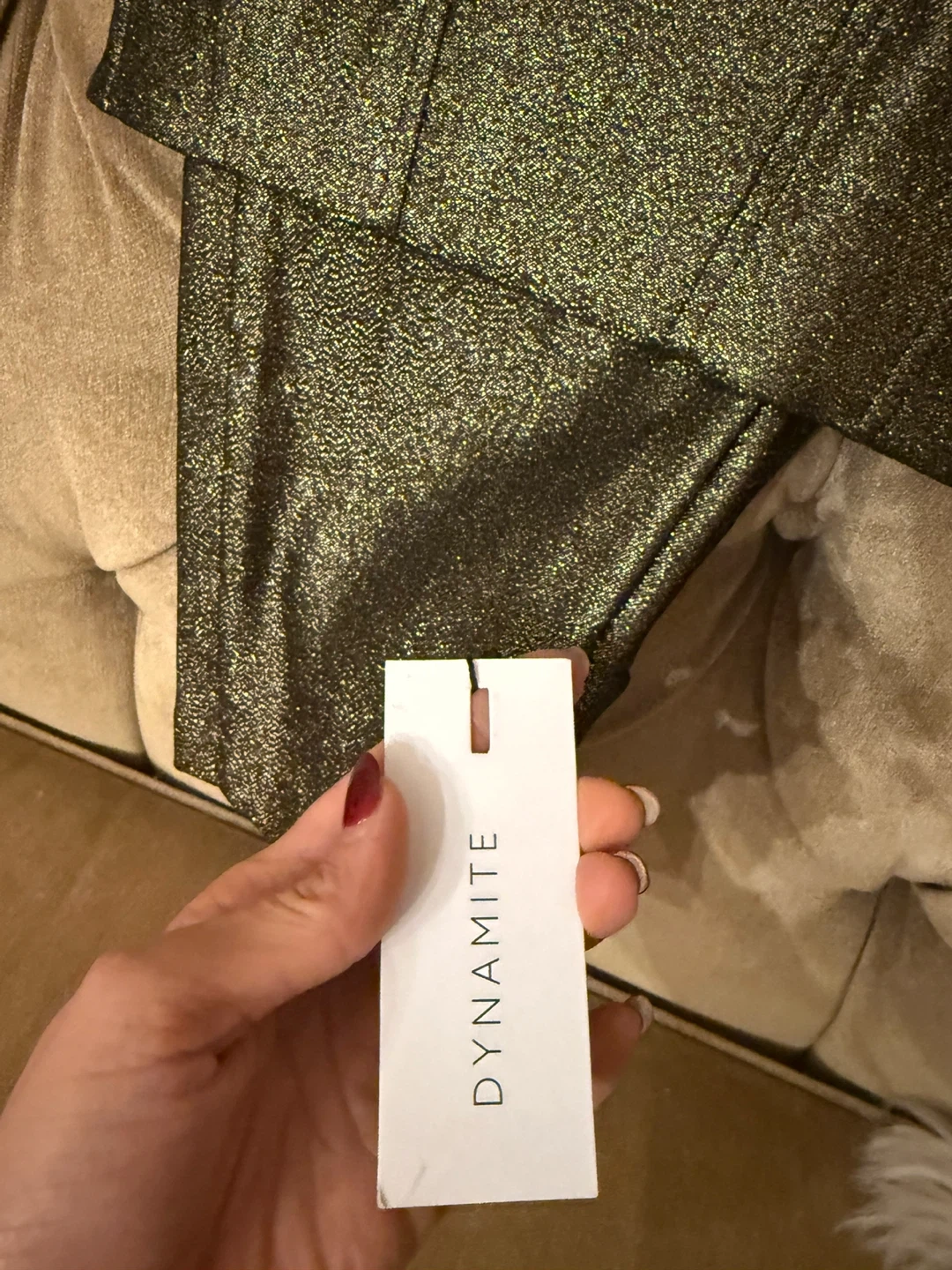 Selling a Dynamite Bowie cropped flare pant and corset set in size XS. It's a beautiful set with a unique design! The material has a subtle shimmer that catches the light nicely. Perfect for a night out or special occasion