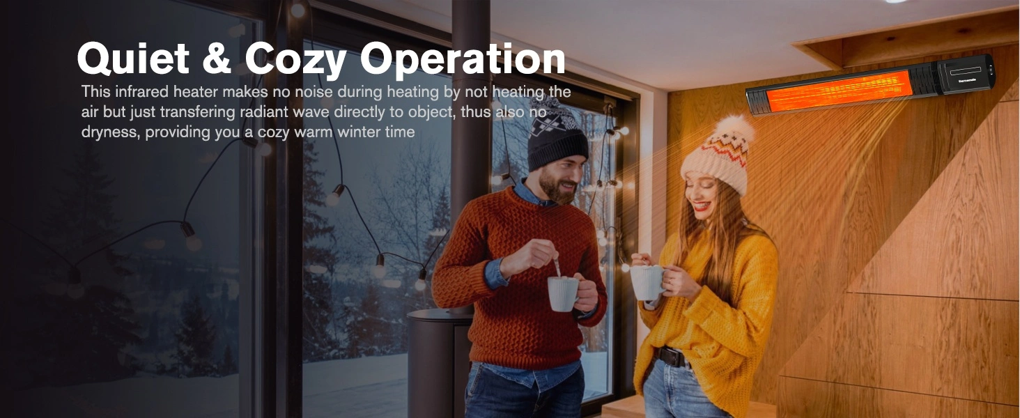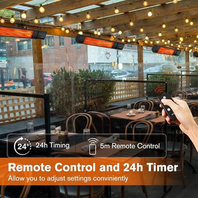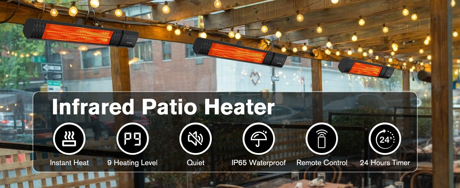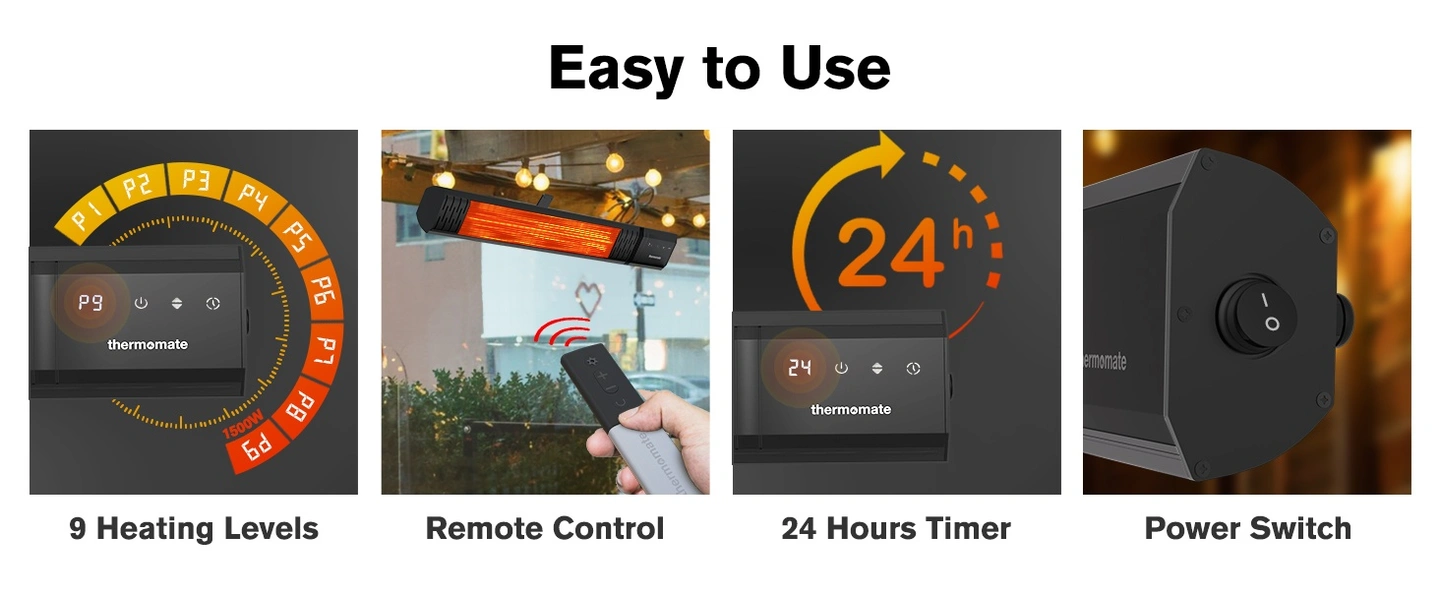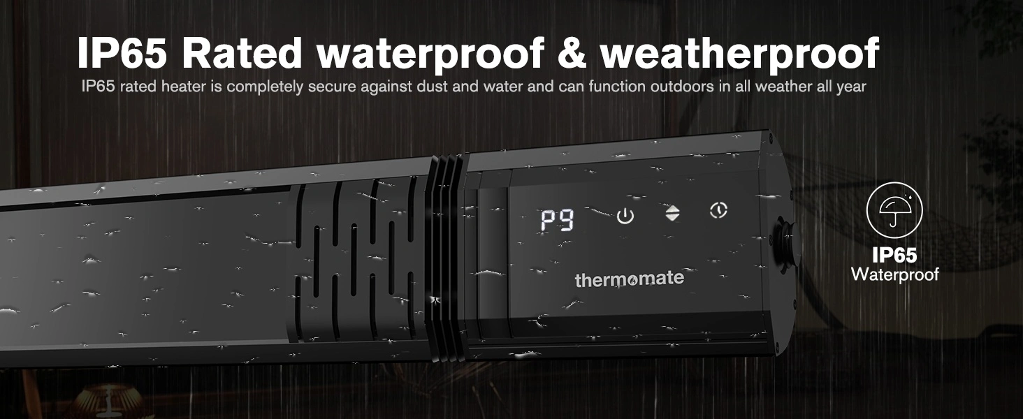 Small Outdoor Heater for Patio, ThermoMate 1500W IP65 Electric Infrared Heater with Low Glare Schott Glass, 9 Heating Levels & 24H Timer, Plug-in 120V Black