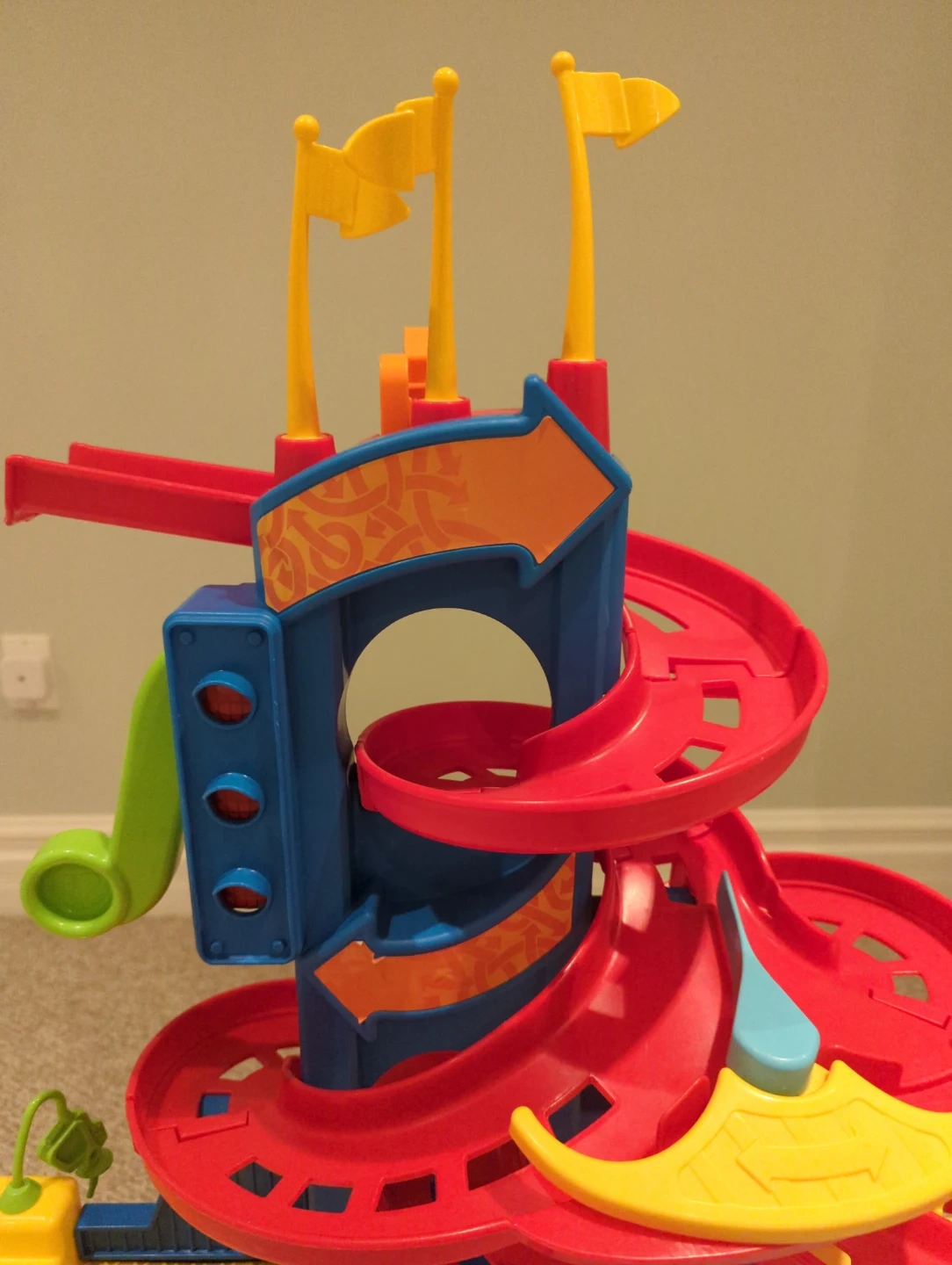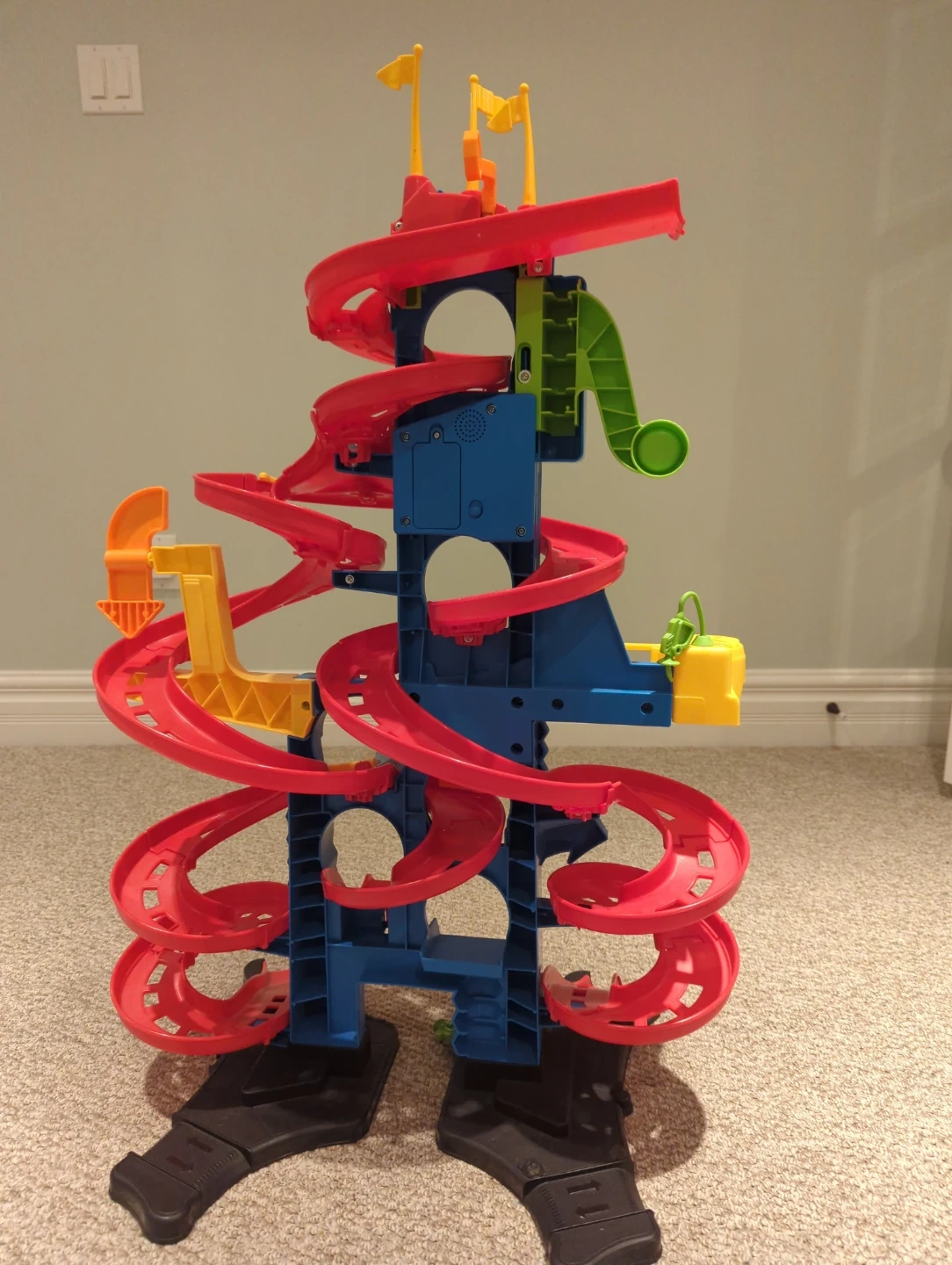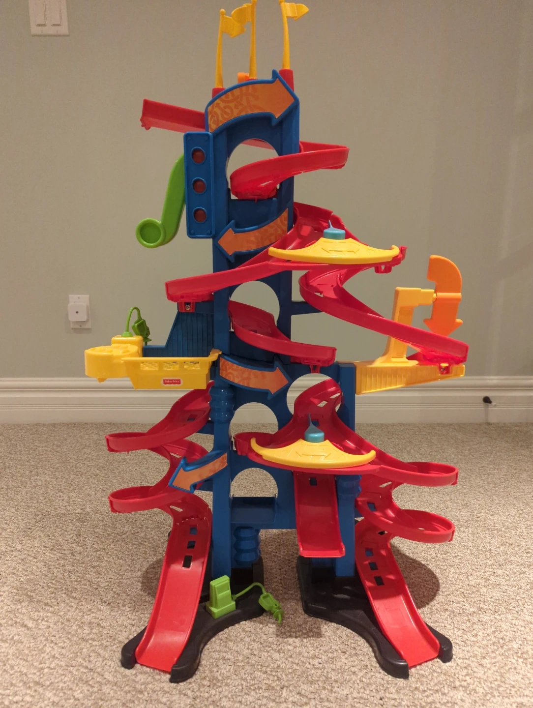 The Fisher-Price Little People Launch & Loop Raceway is ready for new adventures! This colourful playset is perfect for little ones who love cars and racing. It's in great condition and ready for hours of fun!