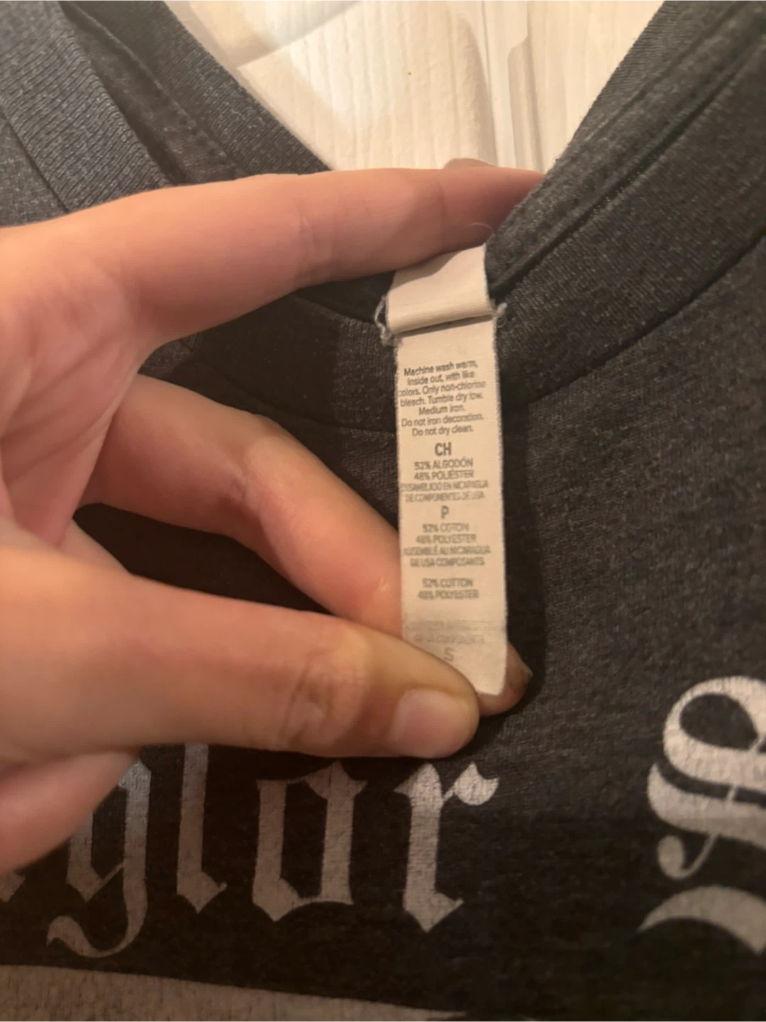 Made from a soft cotton-poly blend and comfortable for everyday wear. In good condition with minimal cracking that is not noticable on the print.