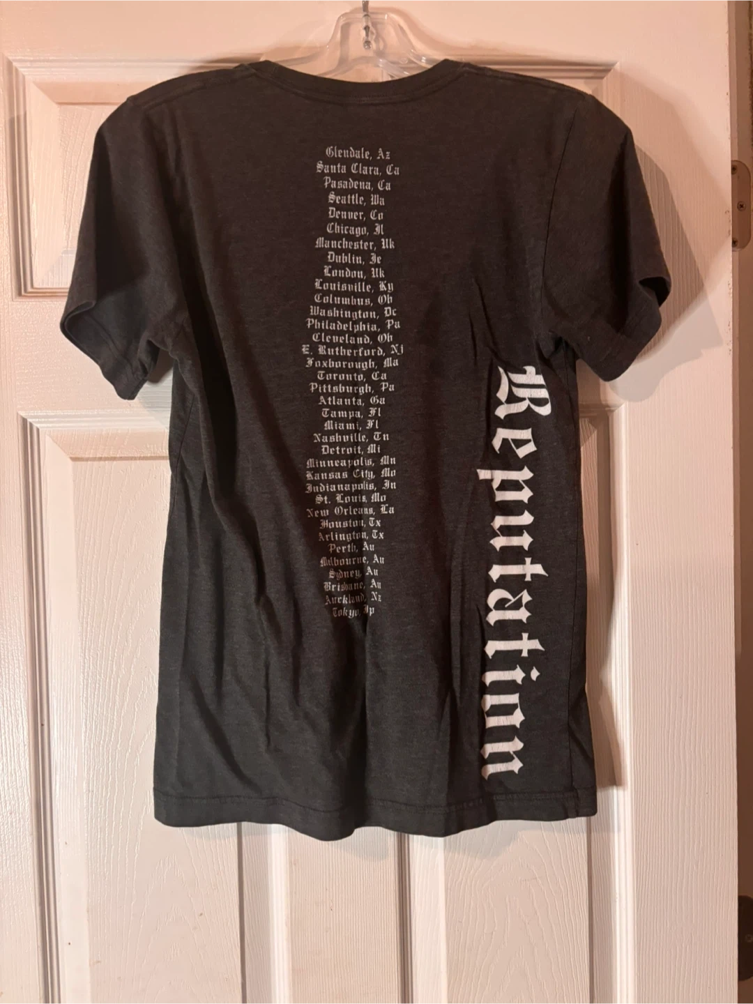 $60 or best offer -Official Taylor Swift Reputation Stadium Tour T-shirt featuring the iconic Reputation album cover and full tour dates printed on the back. A must-have piece for Swifties and concert merch collectors.