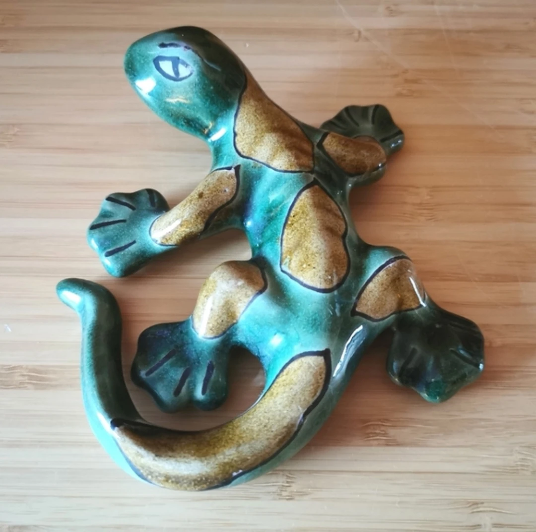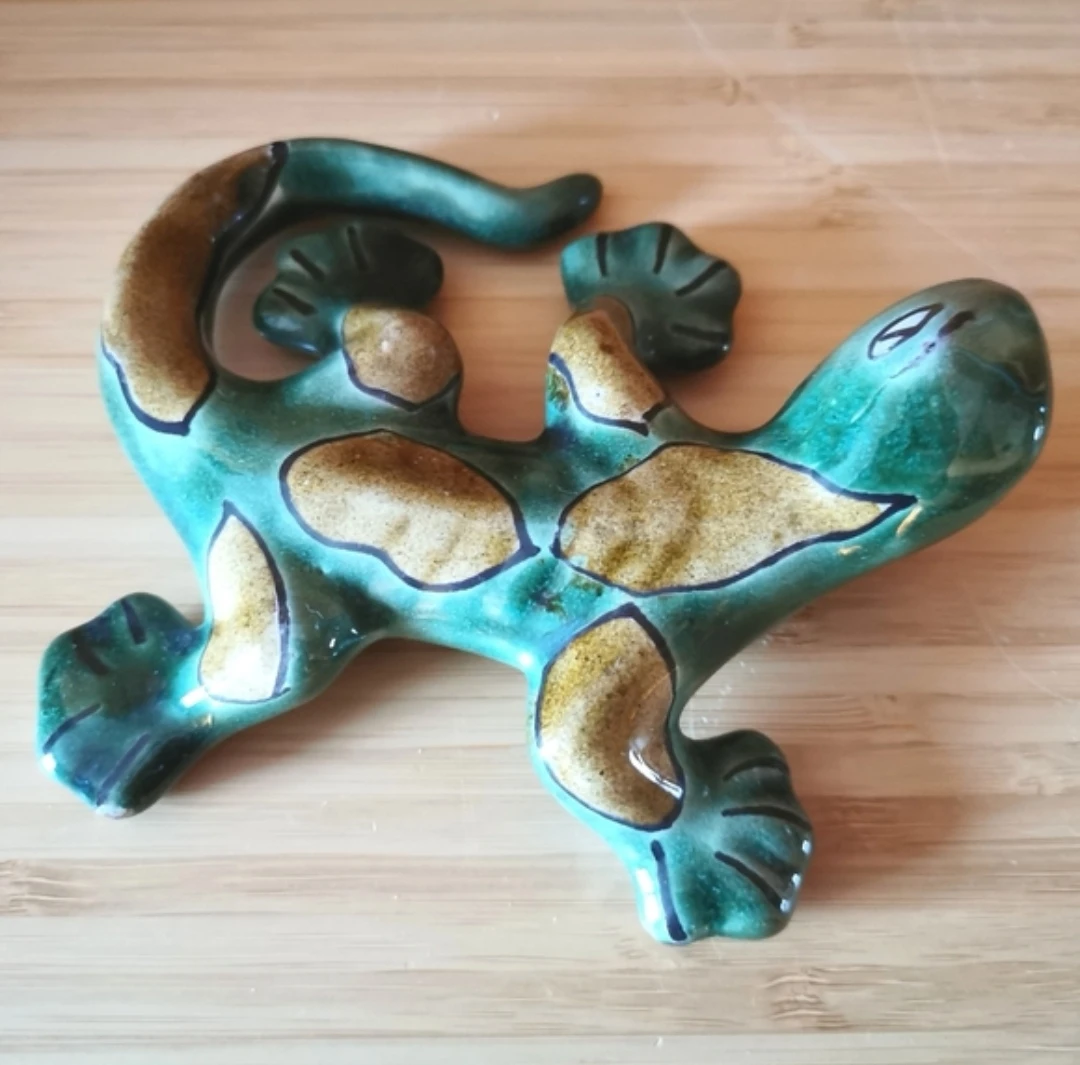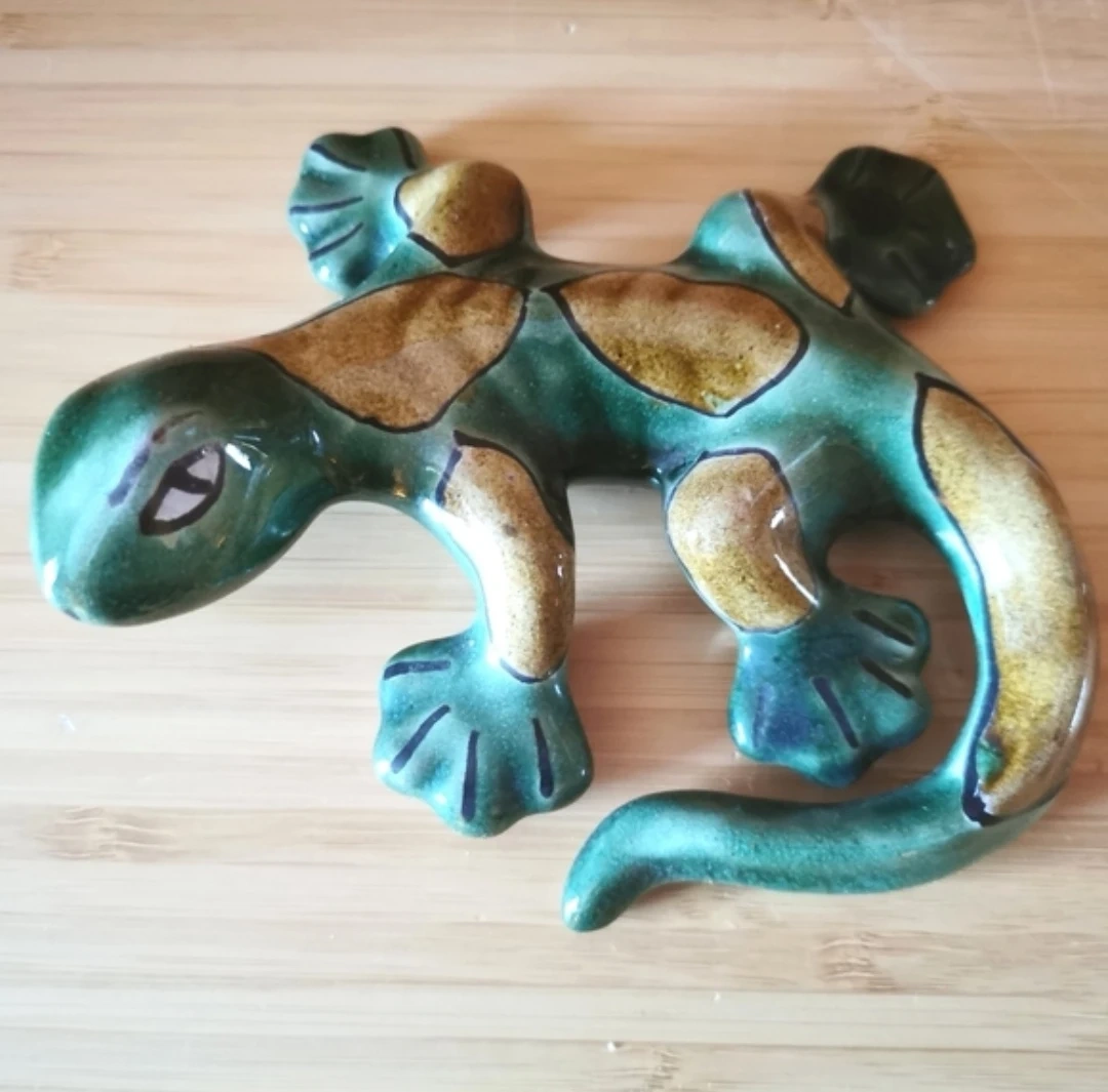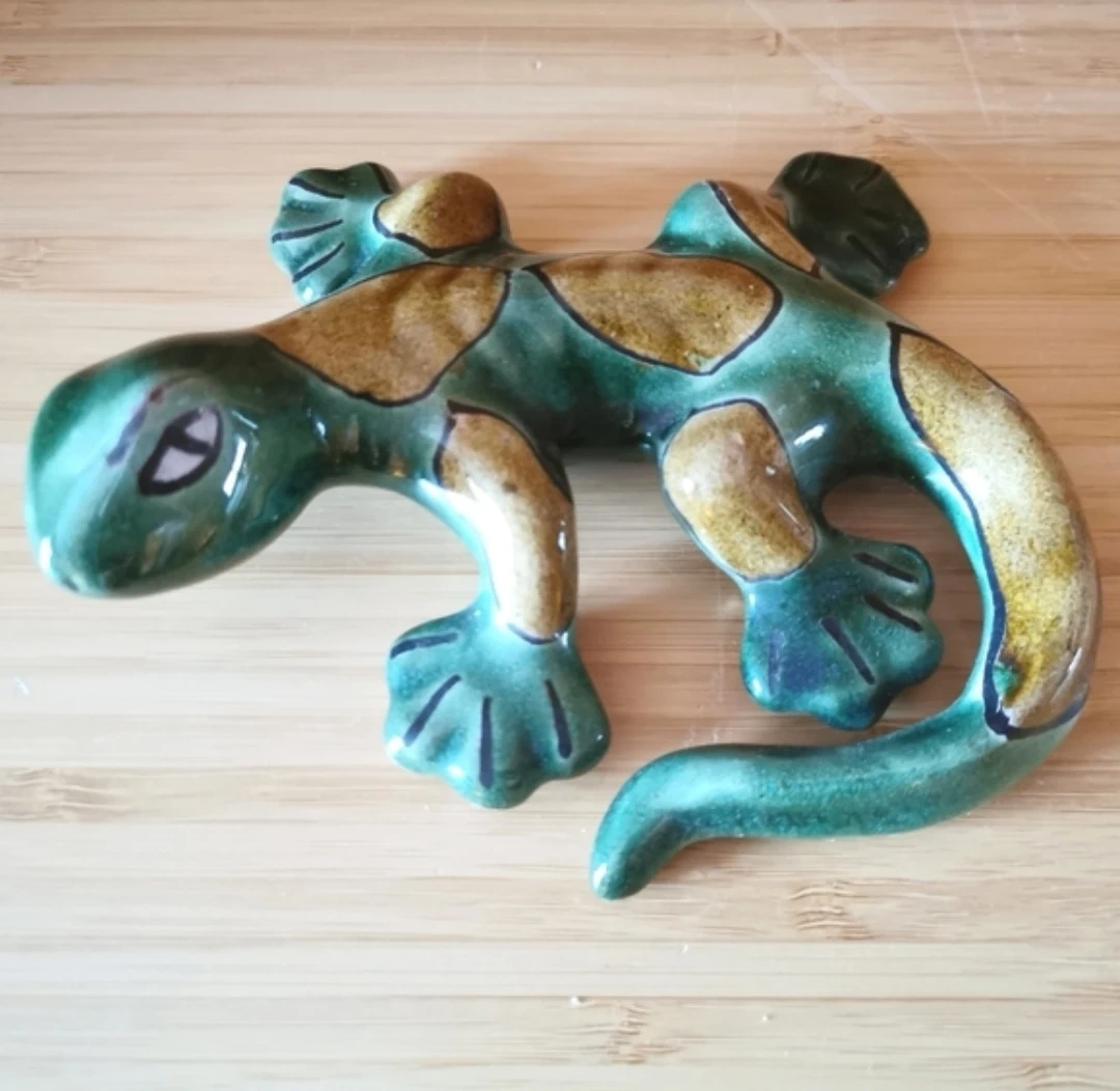 Beautiful Hand-Painted Mexican Talavera Pottery Gecko Lizard Figurine.Β