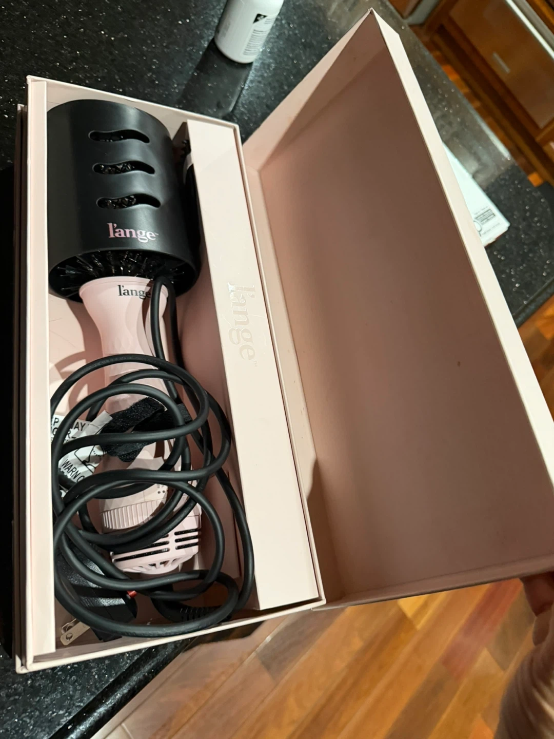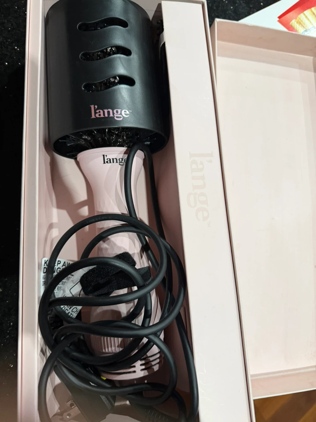 Selling a L'ange Le Volume Blush 2-in-1 Brush Dryer. It comes with the box! This is a 60mm brush dryer in the colour blush. It's designed for smooth, gentle and ionic shine.