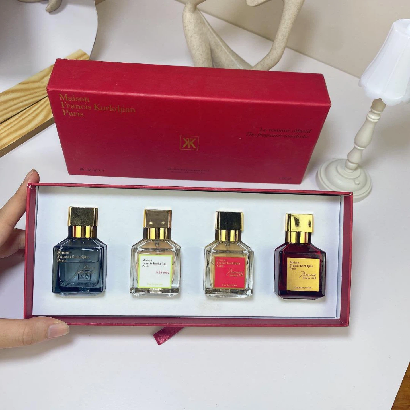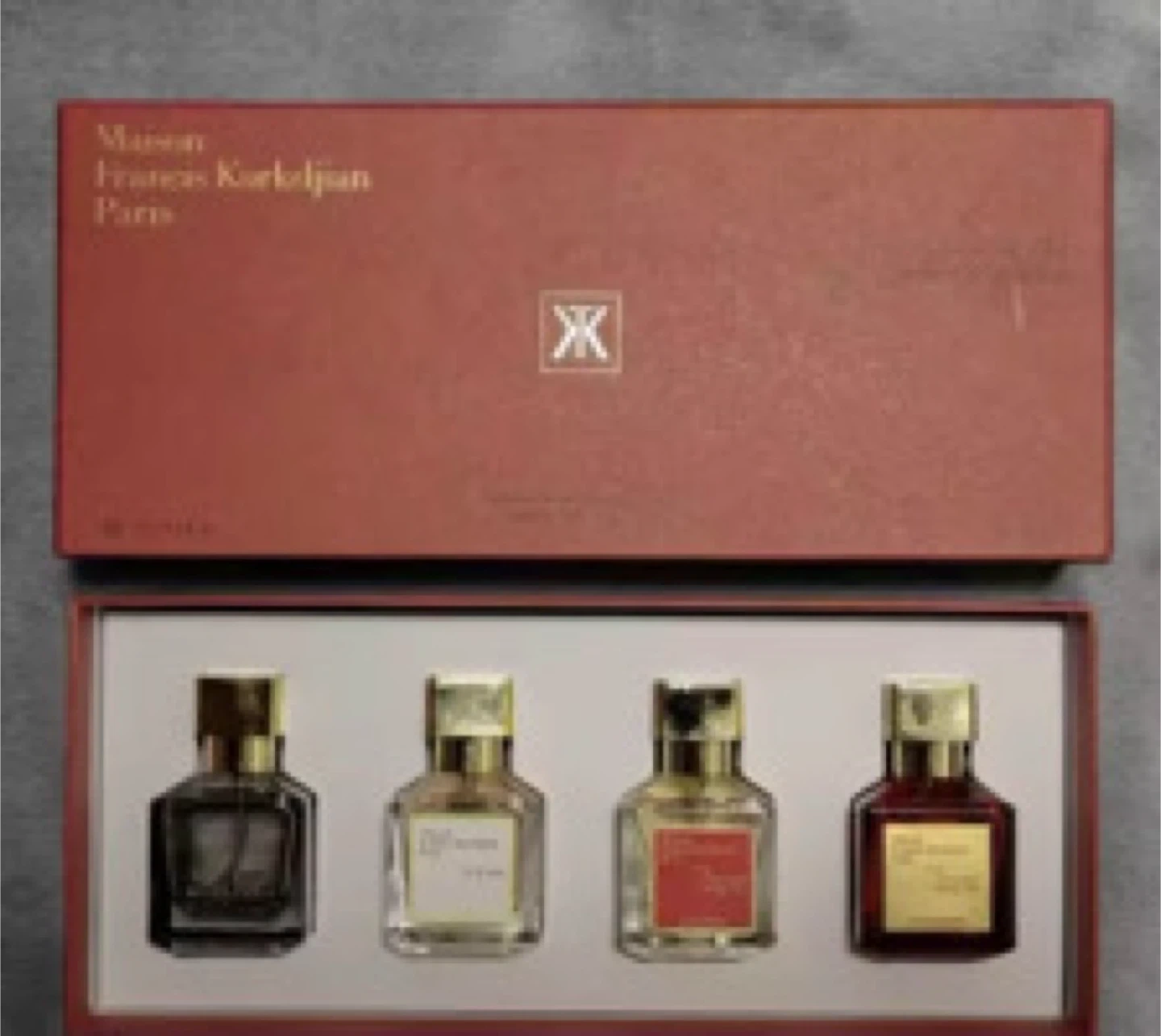Selling a Maison Francis Kurkdjian fragrance discovery set. It includes four different scents in small bottles. The set comes in its original box.