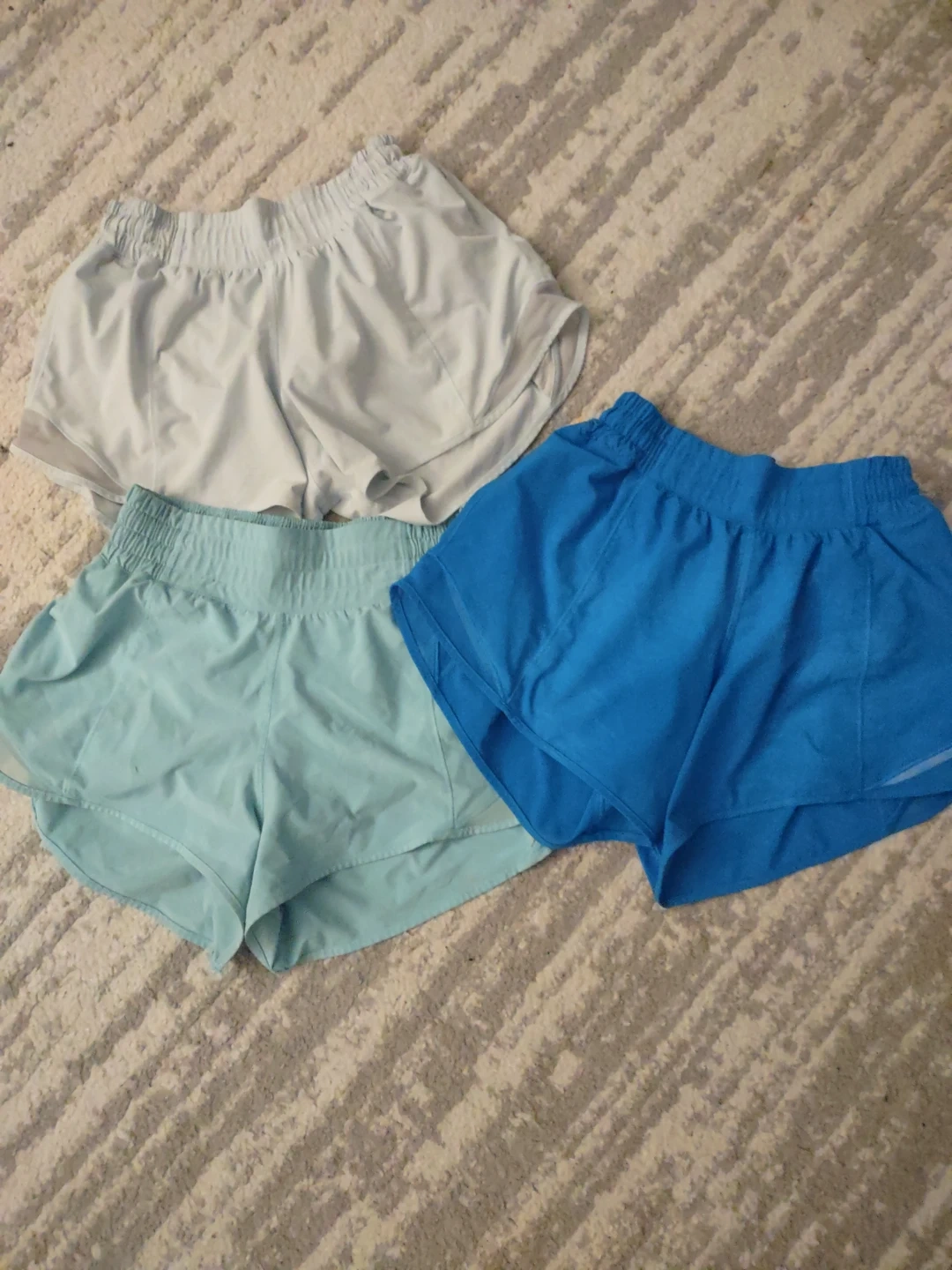 Selling a 3 pairs of Lululemon hotty hot shorts! Theyre all blue just different shades. They're in great condition and ready for your next run around the block or trip to the gym. Theyre all size 4, one for 25 or take them all for 60. Price is negotiable!๐