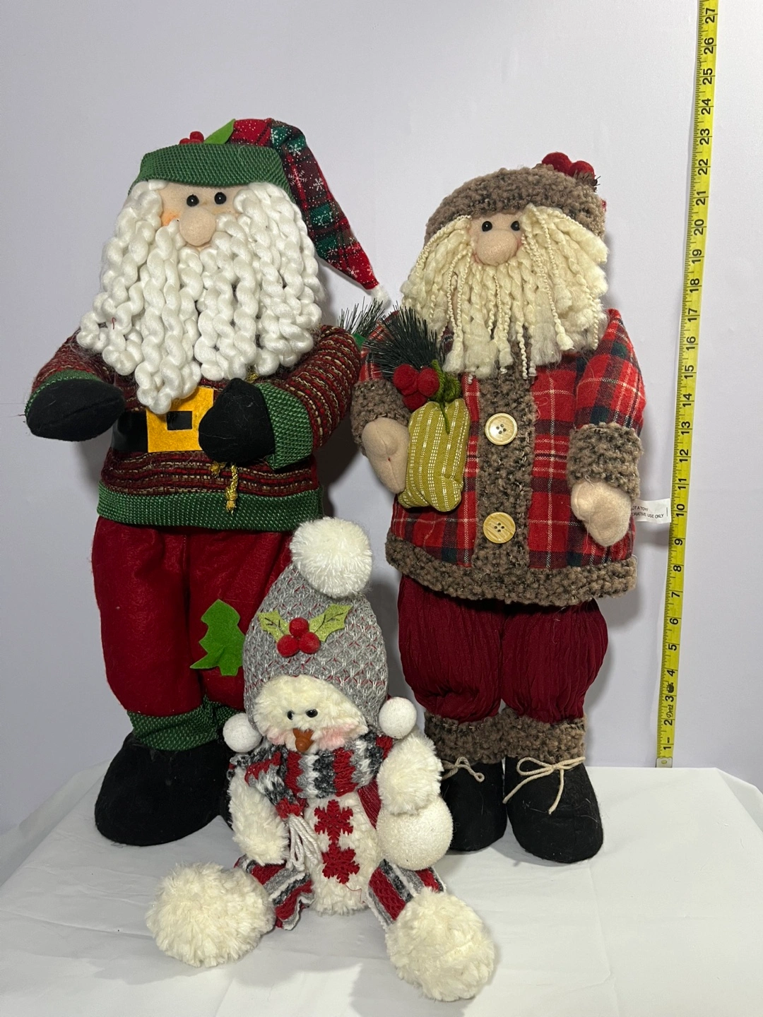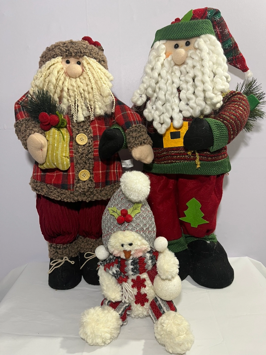 Here are some festive Christmas figurines to brighten up your home this holiday season! There are two Santa figurines and one snowman figurine. They are in great condition and ready to be displayed
