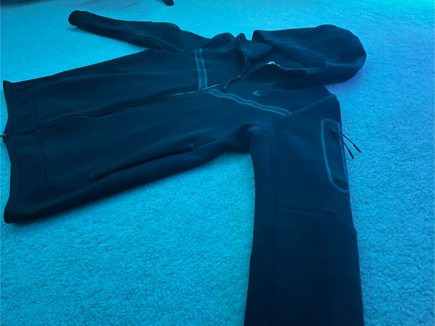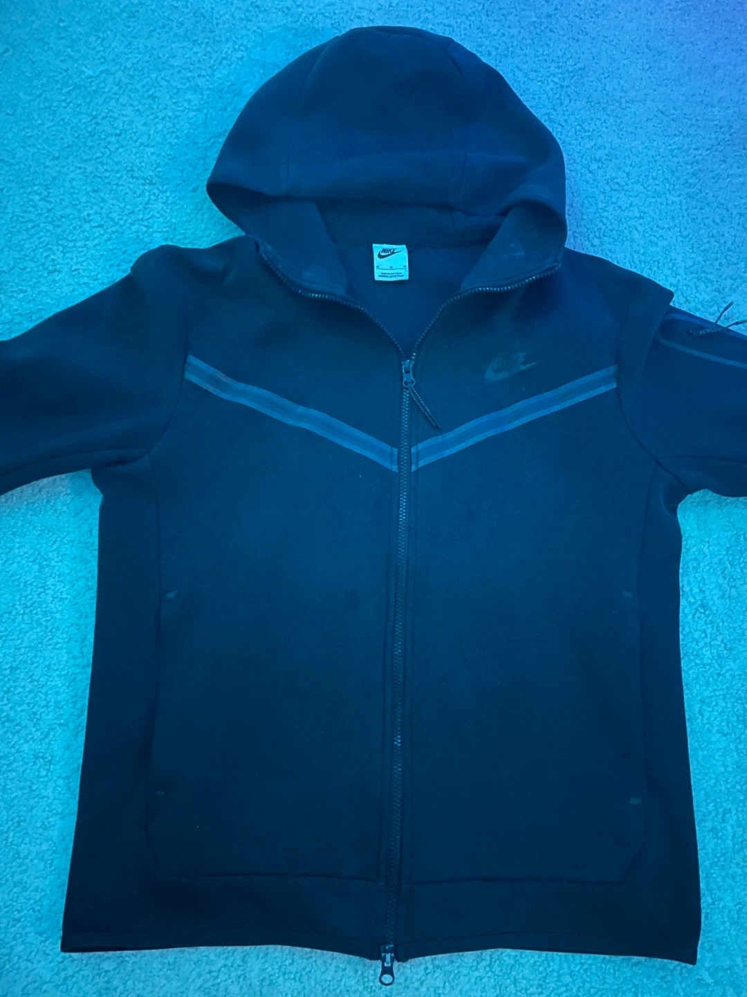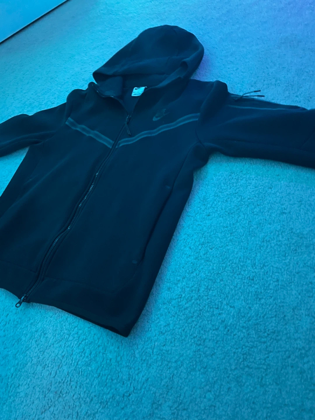 Selling a Nike Tech Fleece hoodie in black, size medium. It's in great condition and ready for a new owner! Perfect for staying warm and stylish.