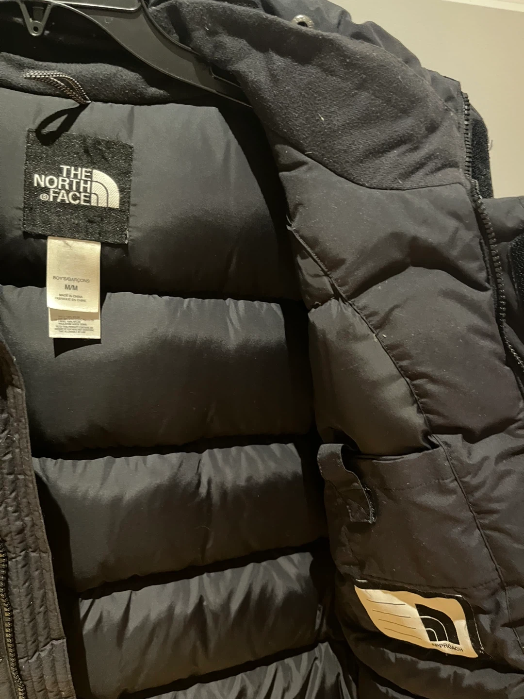 Selling a The North Face black puffer jacket. It's in great condition and perfect for keeping warm! The size is a boys medium/medium.