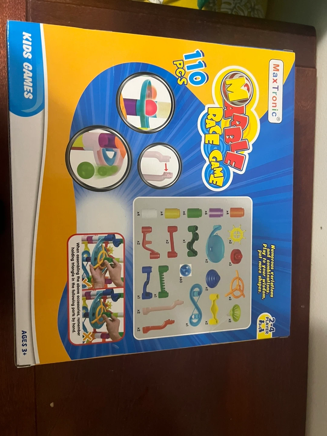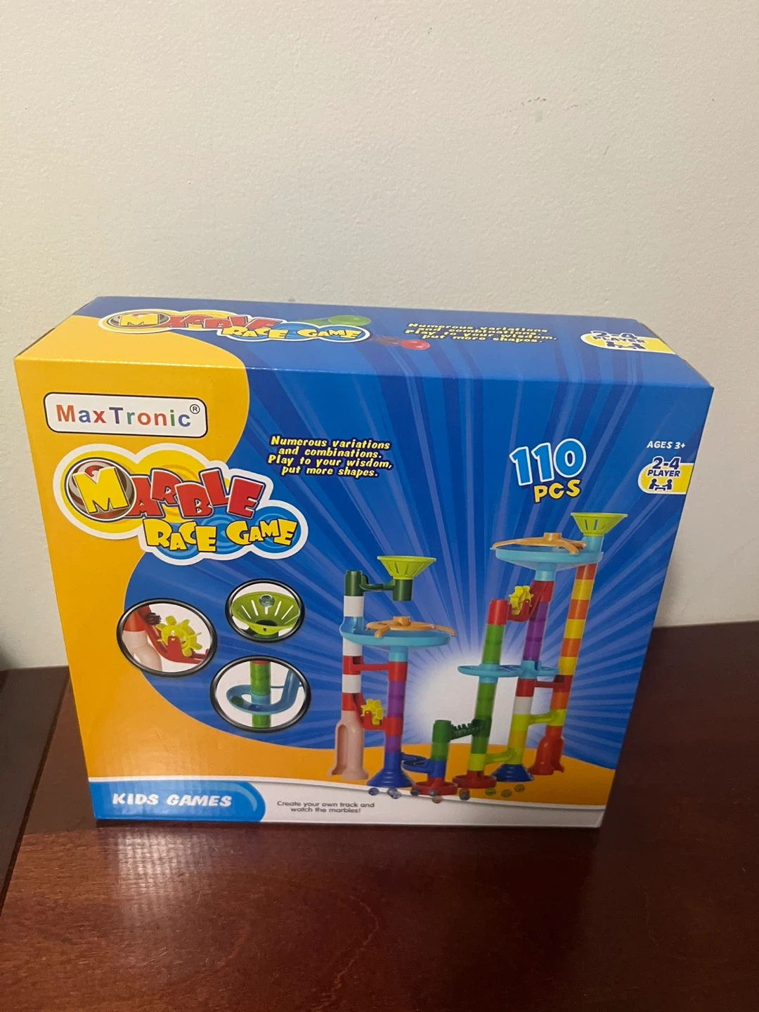 Selling a MaxTronic Marble Race Game for kids! It has 110 pieces for ages 3+. It's a fun game with numerous variations and combinations to play with