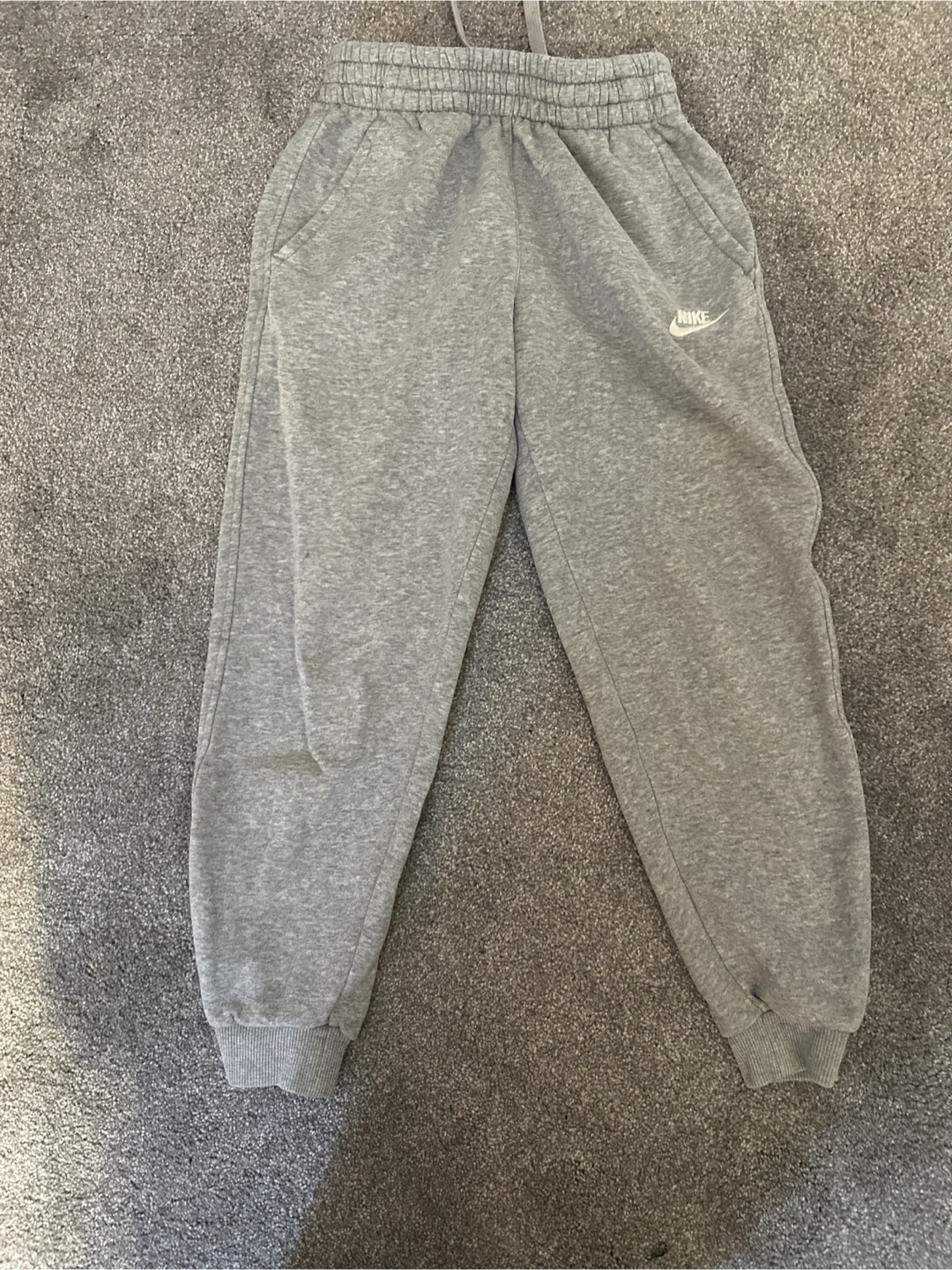 Selling a pair of Nike joggers in grey. They are in good condition and ready for a new home for kids around 137-147cm or a youth size medium